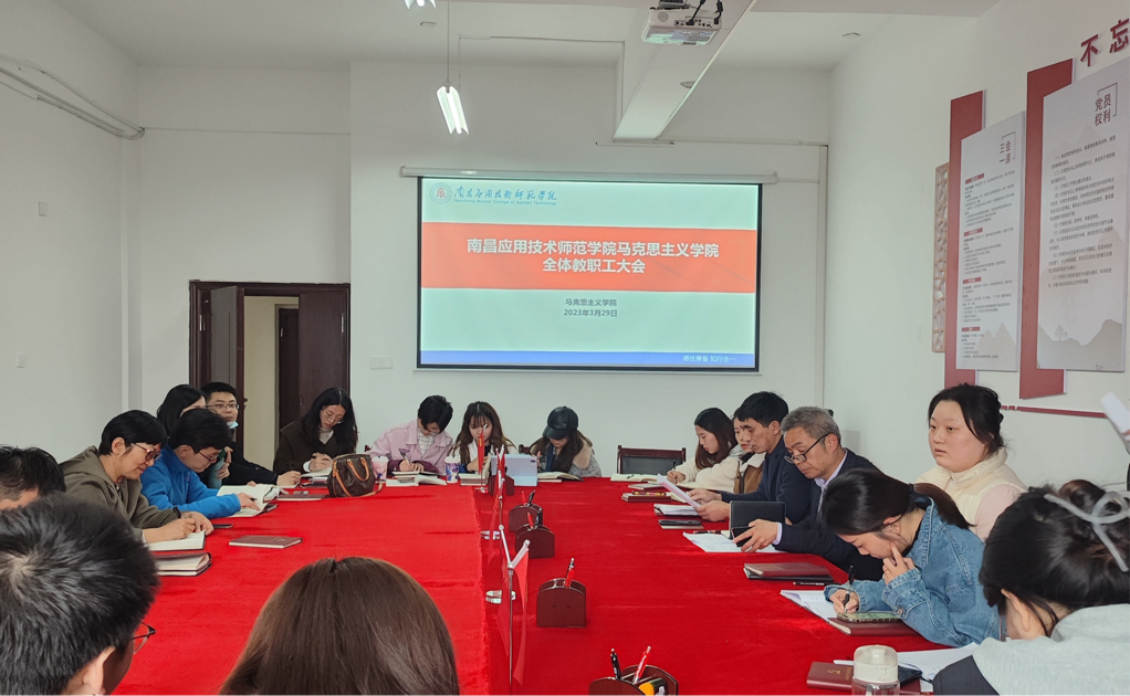 2023年3月29日14:00,jinnianhui今年会在1507会议室召开了全体教职工例会。院长文道贵、党总支副书记桂光泽,各教研室主任、各科室负责人以及学院全体教职工参加此次会议,会议由副院长卢林保主持。