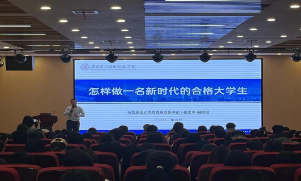 最后,党总支副书记桂光泽对今年会青年未来规划做出几点总结。他回答了如何全面认知大学、适应大学生活、完成角色转变,倡导全体学生认真思考人生、合理规划学业、激发学习热情,能够树立正确的价值观,明确自身发展方向,充实大学生活,在新征程上激昂青春之志,奉献青春之力,谱写更加壮美的青春之歌。