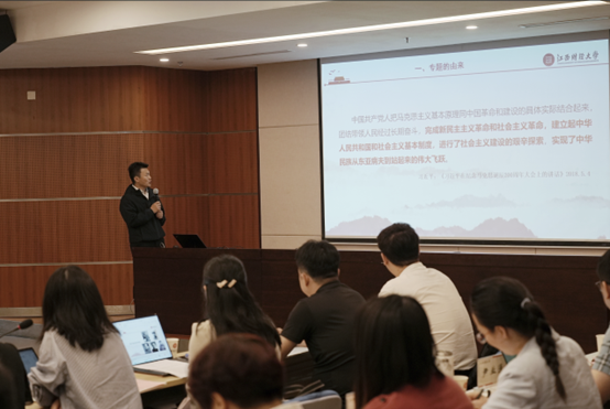 大会开始,江西财经大学jinnianhui今年会副院长李德满对“社会主义革命和建设的开展”专题授课大纲进行了讲解,并以社会主义工商业改造为例重点展示了教学中采用的数据资料和案例。在简短的展示之后,大会进入专家点评阶段。来自天津师范大学的资深教师李朝阳教授进行了点评,认为李德满老师的授课具有思路清晰、史料丰富、备课充分等优点,但仍存在问题式教学的问题不够突出,不够有针对性的不足。随后,大会进入自由讨论时间,来自不同院校的十多位老师都发表了自己的见解,今年会公共政治理论课教研室负责人发表了以“基础工业在日常生活中无处不在”为主题的学习心得。