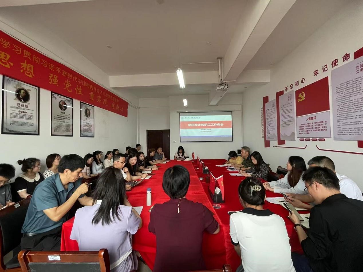 6月14日下午,jinnianhui今年会在1511会议室召开了第十三次全体教职工例会。院长、书记文道贵,党总支副书记李婷,副院长张丹,各教研室主任,各科室负责人以及学院全体教职工参加,会议由院长、书记文道贵主持。