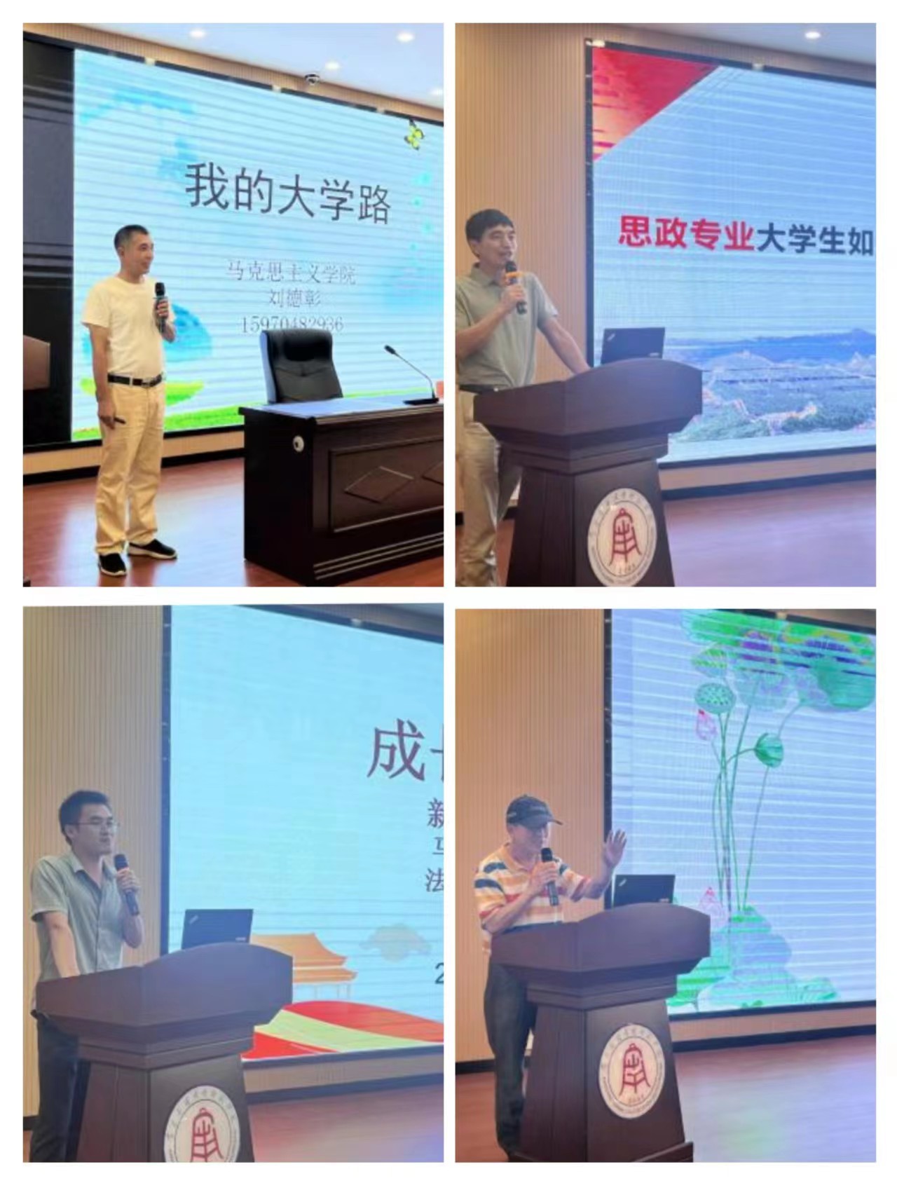 随后,骨干教师们对大一新生的到来表示祝贺,法学专业刘德彰老师用自己的大学路和工作经历激励同学们做好学业规划,表示“如果想做好一件事,坚持,就一定能做好”。思政专业卢林保老师从夯实基础、学会学习、面向新时代和活学活用四个方面解析思政专业应该如何学好专业知识。法学教研室主任李水根老师用朱熹的《劝学》警示同学们青春年华很快会消逝,要利用好大学的时光成长和成才。思政专业教研室主任余启咏老师鼓励同学们要树立信心和希望,要自主学习,做好时间管理、提升修养,成功源于不断的奋斗。