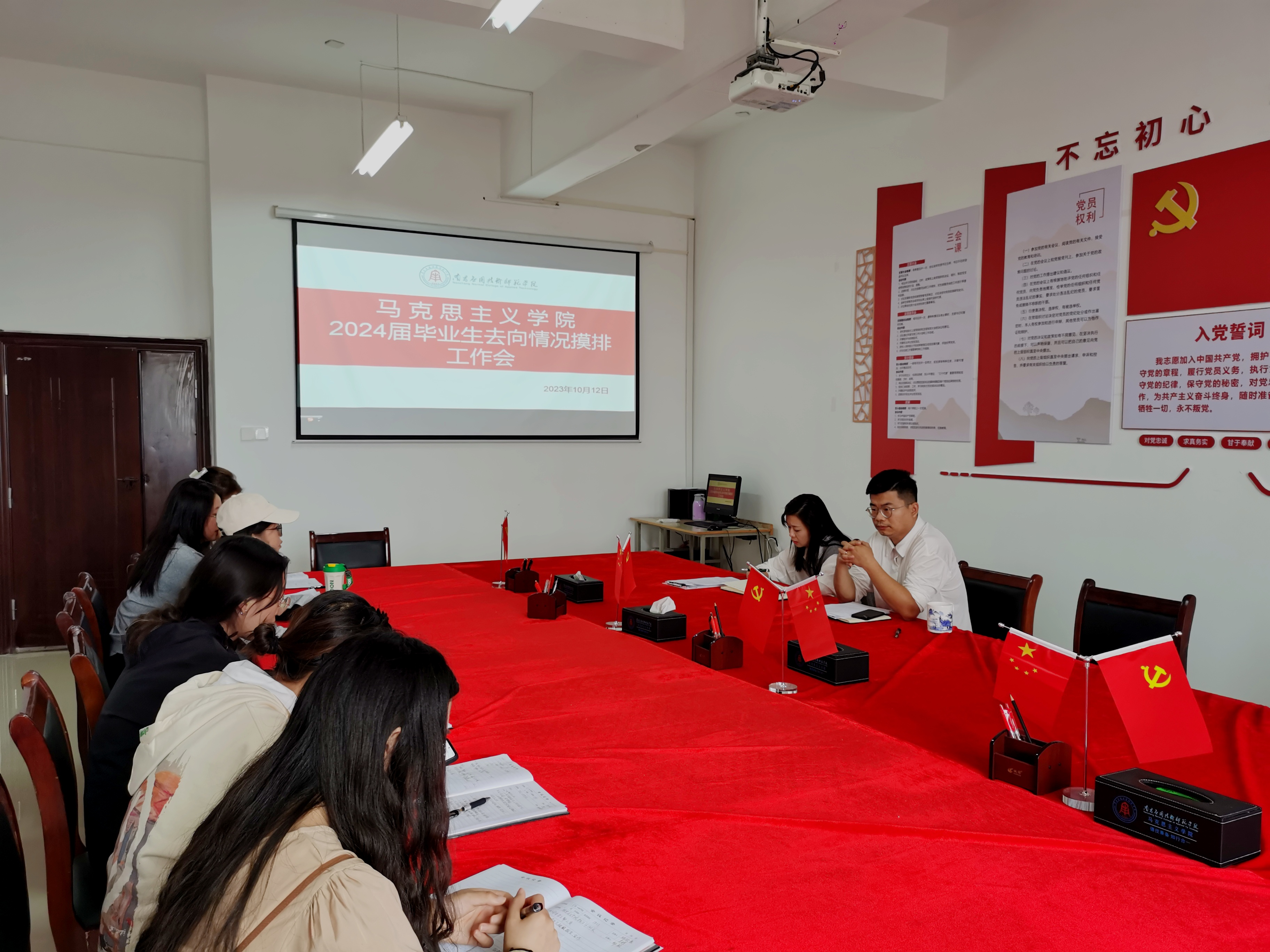 为做好jinnianhui今年会2024届毕业生就业工作,2023年10月12日下午,在1511会议室召开毕业生去向情况摸排工作会,党总支书记张欣康,党总支副书记李婷以及学工队伍全体老师参加会议。