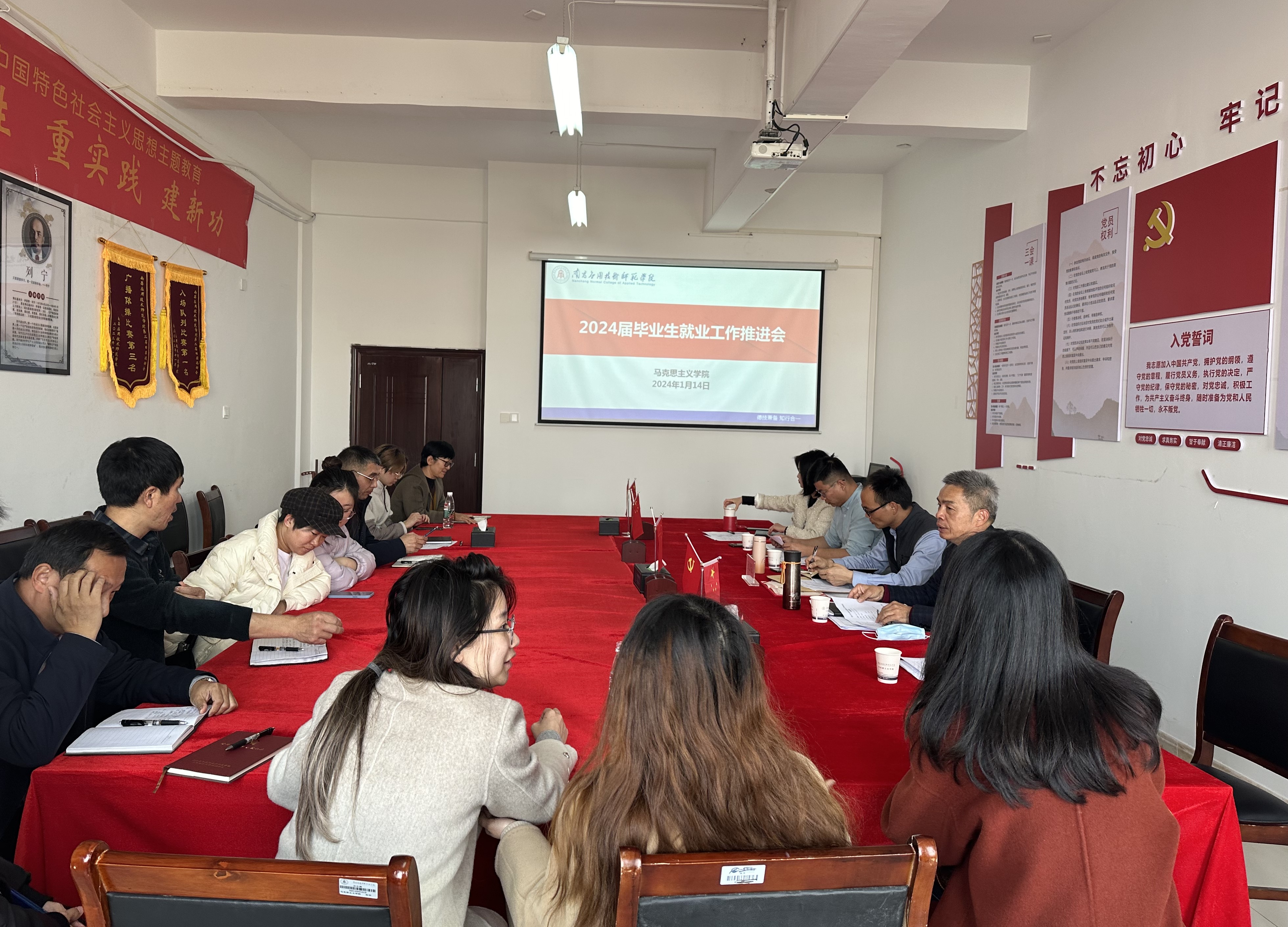 jinnianhui今年会于2024年1月14日在1511会议室召开2024届毕业生就业工作推进会,此次会议由院长文道贵主持,校党委副书记蓝贤发、马院党总支书记张欣康、副书记李婷、各论文实习指导老师及毕业班辅导员参会。