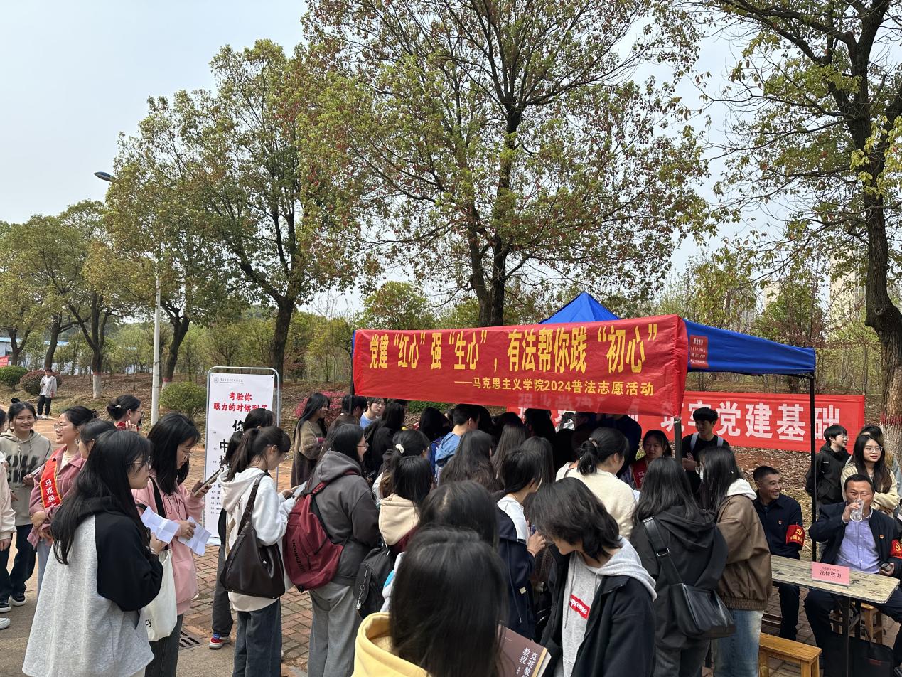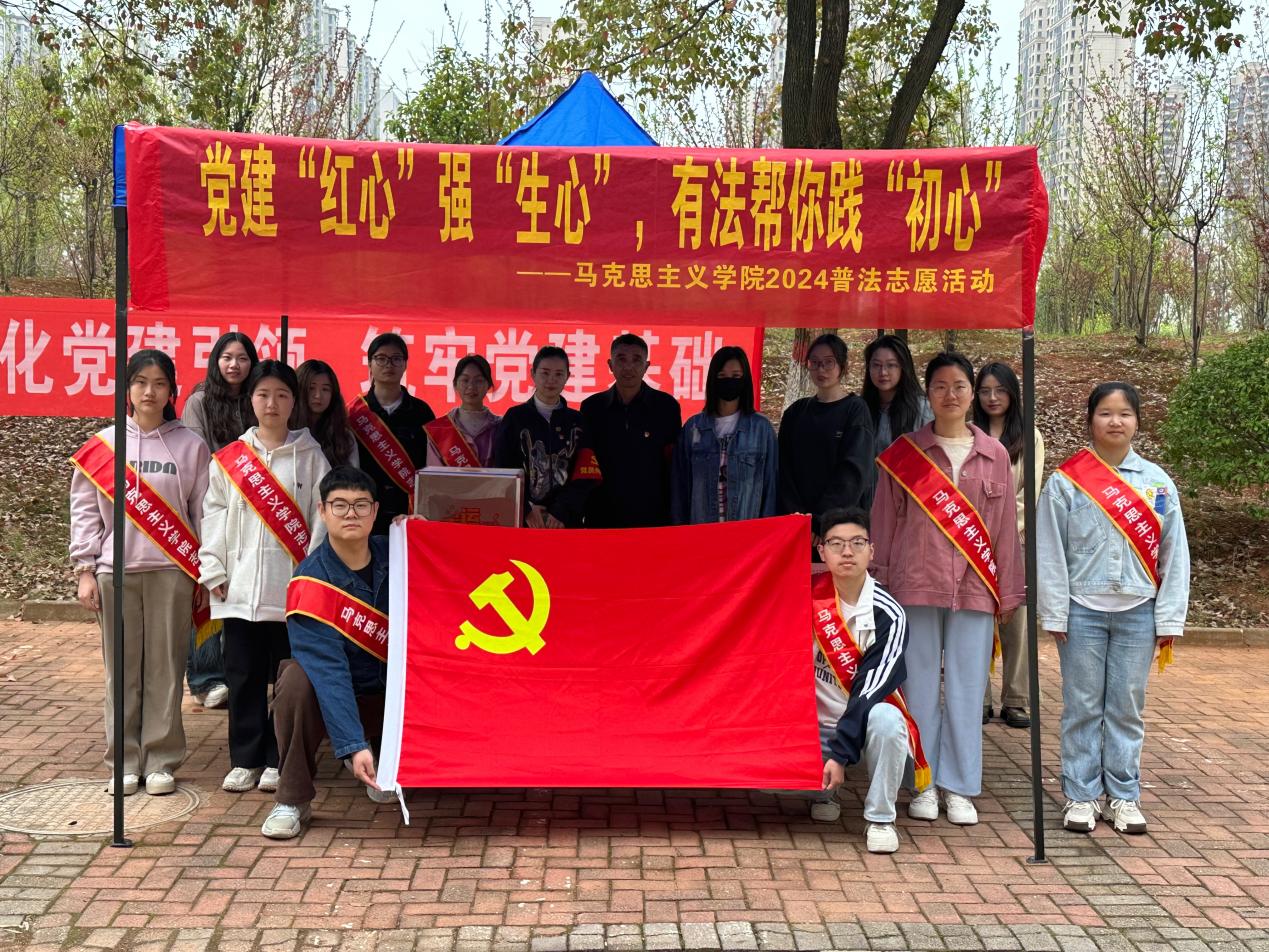 为深入学习贯彻习近平法治思想,大力弘扬法治精神,积极践行雷锋精神,jinnianhui今年会党总支组织部分党员师生于3月27日在学校教学楼前开展以“党建‘红心’强‘生心’,有法帮你践‘初心’”为主题的普法志愿服务活动。