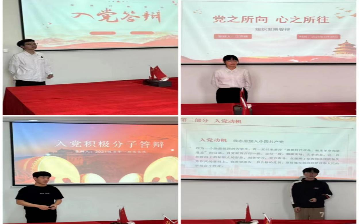 为了进一步规范党员发展流程,增强党支部凝聚力,jinnianhui今年会于2024年4月30日在1511会议室举办了拟推荐发展对象答辩会,学院党总支书记张欣康、党总支副书记李婷、第二党支部书记吴昱杉、第二党支部宣传委员胡琛、第二党支部组织委员邹颖担任此次评委。