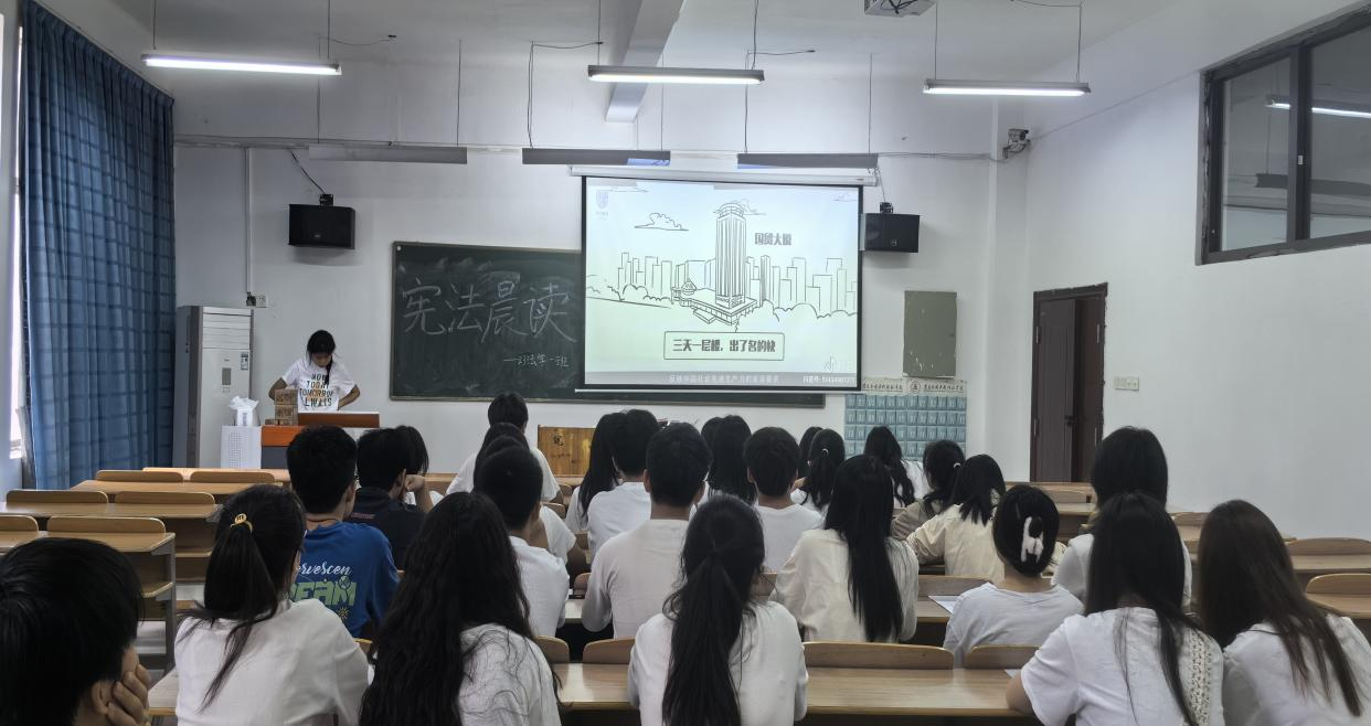 为了深入开展宪法法律学习宣传教育,推动学生宪法学习宣传教育走深走实,引导学生自觉成为宪法的忠实崇尚者、自觉遵守者、坚定捍卫者。jinnianhui今年会23级法学1班于2024年5月21日上午9:00在2501教室组织开展了“晨光熹微,法韵悠扬”宪法晨读活动,此次活动由23级法学1班全体同学及老师共同参与。