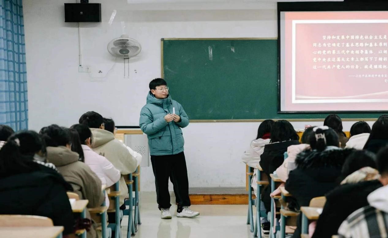 陶也青走进2022级思想政治教育(师范)专业3班课堂听取了学院杨志明老师主讲的《习近平新时代中国特色社会主义思想概论》课程。杨志明老师围绕“中国特色社会主义是历史和人民的选择”“中国特色社会主义是社会主义而不是其他什么主义”以及“中国特色社会主义进入新时代”等内容展开详细阐述,师生互动频频,并就中国特色社会主义道路选择与发展的相关内容展开热烈讨论,杨志明老师分条析理地为同学们讲解。