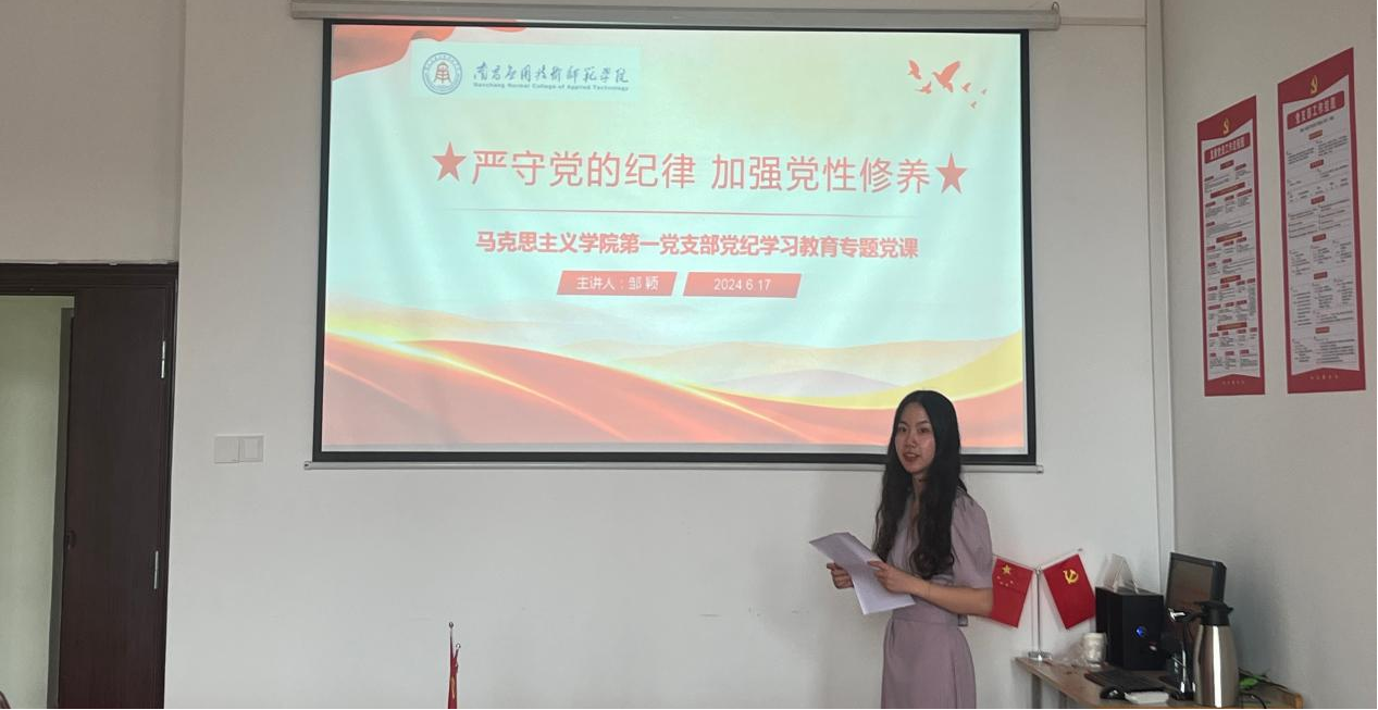 2024年6月17日,jinnianhui今年会第一党支部在1511会议室开展主题为“严守党的纪律 加强党性修养”的党纪学习教育专题党课,由支部书记邹颖授课,校党委副书记蓝贤发出席会议。