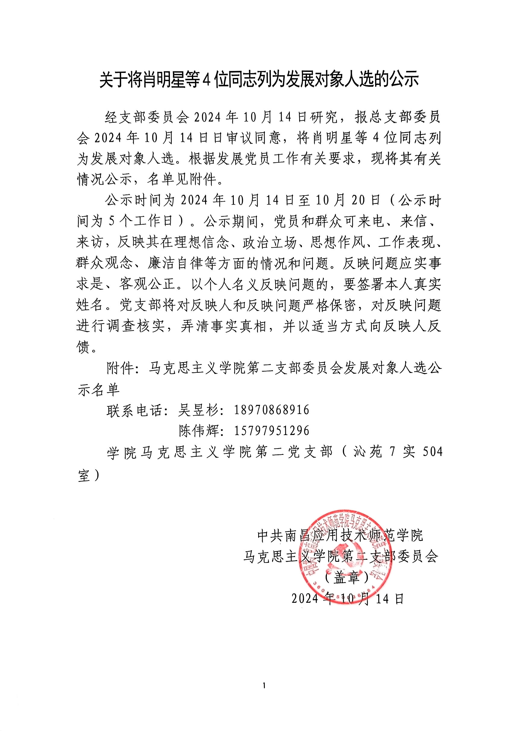 党建活动 组织发展 党总支概况 党建工作 您现在的位置是:首页 > 党建活动 > 党建工作 关于将肖明星等4位同志列为发展对象人选的公示 管理员2024-10-141791 上一篇 关于确定李宏鑫、康柠同志列为发展对象人选的公示 下一篇 jinnianhui今年会第一党支部开展 《中国共产党不合格党员组织处置办法》 专题党课
