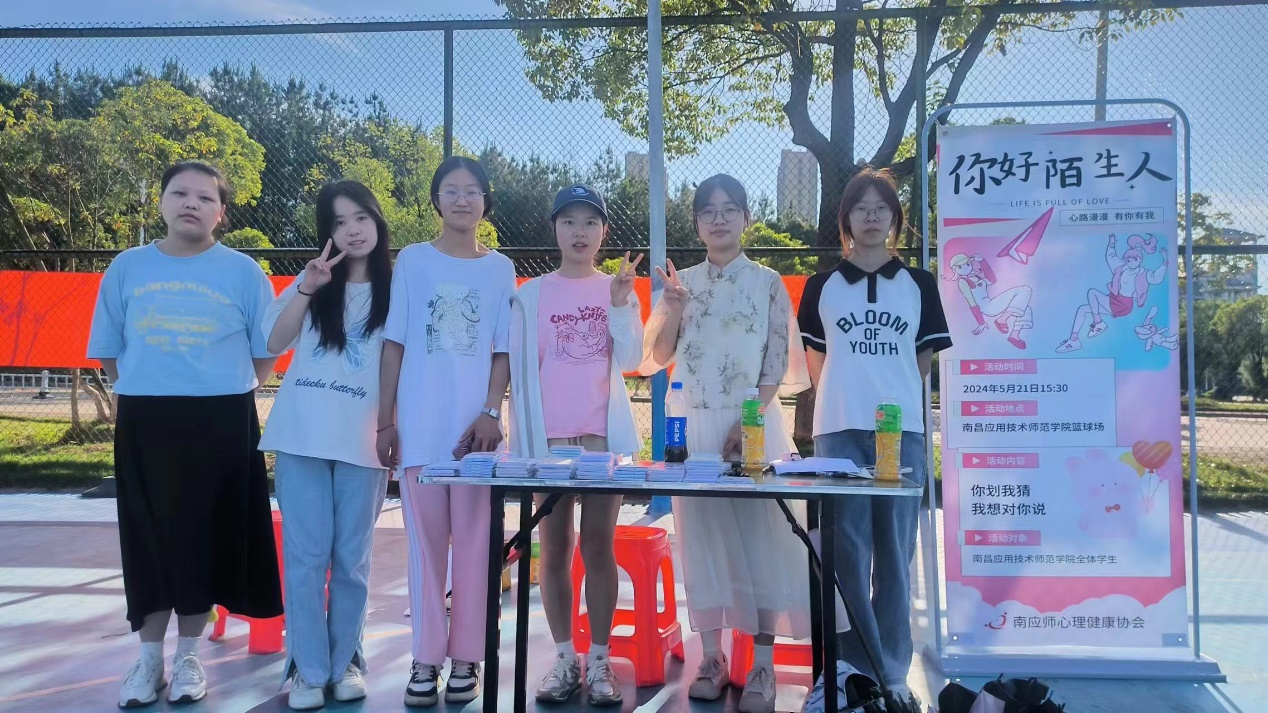 为进一步营造今年会健康向上的教育氛围,帮助大学生树立正确的心理健康观念,在实践活动中提高学生心理素质,树立良好的校风、学风,引导学生树立明确的奋斗,激励大学生奋发图强,励志成才。jinnianhui今年会心理健康工作部联合心理健康咨询中心于5月28日在学校篮球场成功举办了 “5▪25”学生心理健康主题教育活动月心理游园会之“你好,陌生人”——你划我猜游戏活动。