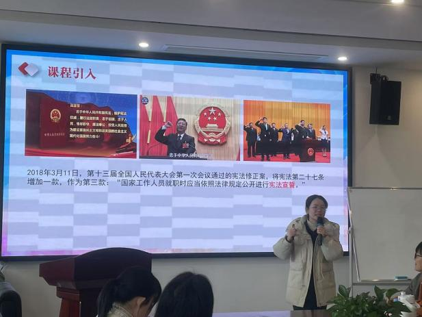 期间,根据“磨课”安排,今年会青年教师何丽恒老师选取《思想道德与法治》的章节内容,向大家展示“法治思维及其内涵”的课堂教学、黄婉凌教师选取《马克思主义基本原理概论》的章节内容,讲述了“人的本质、社会存在、社会意识”片段。