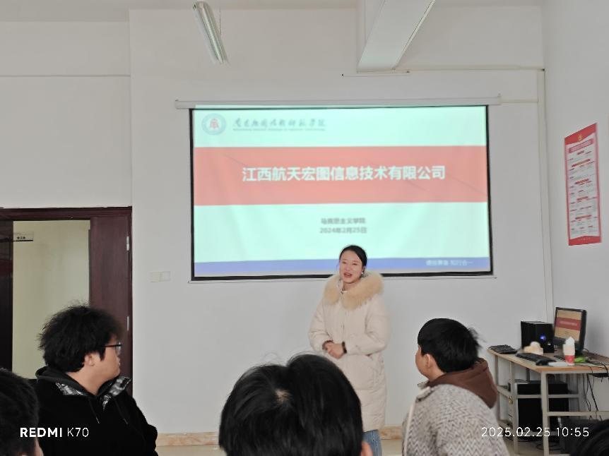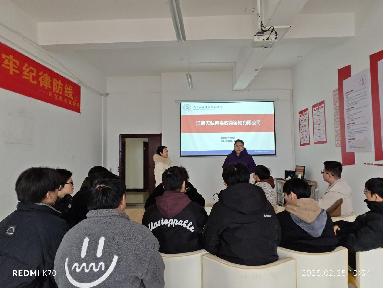 2025年3月5日,马克思主义学院迎来了一场别开生面的就业活动。今年会邀请到江西航天宏图信息技术有限公司、江西天弘南嘉教育咨询有限公司成功举办了一场小型而精准的招聘会,为即将步入社会的学子们搭建了一个直面企业的宝贵平台。