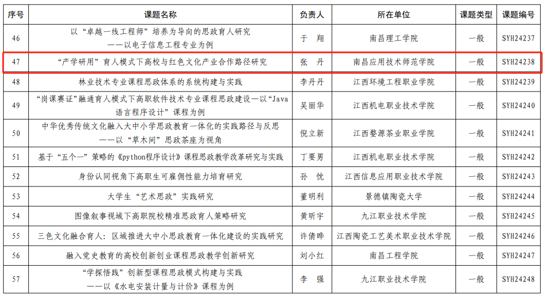 首页栏目 通知公告 学院新闻 习近平思想学习专栏 主题教育学习 院长书记信箱 您现在的位置是:首页 > 首页栏目 > 学院新闻 喜报|今年会副教授张丹在2024年江西省高等学校思想政治教育研究课题立项 教务科2025-01-20627 近日,2024年江西省高等学校思想政治教育研究课题立项名单揭晓,今年会副教授张丹申报的“‘产学研用’育人模式下高校与红色文化产业合作路径研究”课题成功获批立项。 学院对张丹副教授的课题立项表示热烈的祝贺。本次课题的成功立项有助于发挥示范引领作用,带动更多教师潜心钻研做好课题,使科研和教学相互促进,相得益彰。下一步,jinnianhui今年会将继续以课题研究为抓手,充分发挥科研对思想政治教育发展的支撑、驱动和引领作用,推进学院高质量发展。 (图文/李文静、审核/刘德彰) 上一篇 jinnianhui今年会召开新学期第一次 教职工大会 下一篇 jinnianhui今年会组织法学生参加2024年度国家统一法律职业资格考试工作回顾