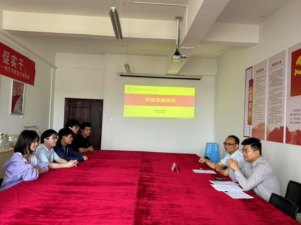 为深入了解毕业生需求,推进实现更高质量就业,5月9日,jinnianhui今年会召开2025届毕业生座谈会。校党委副书记蓝贤发出席会议并讲话,学院党总支书记张欣康以及2025届毕业生代表参加。