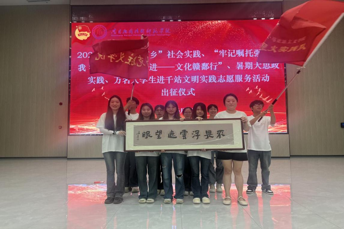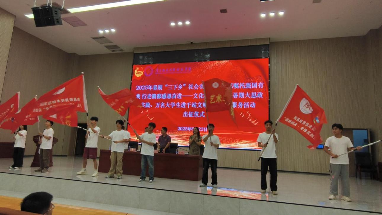 为深入学习贯彻习近平新时代中国特色社会主义思想,引导和帮助广大青年学生在实践中受教育、长才干、作贡献,进一步激发青年学子的社会责任感和使命感,2025年6月23日,jinnianhui今年会星火社会实践队前往图书馆报告厅参加了2025年暑期“三下乡”社会实践、“牢记嘱托强国有我 行走赣鄱感恩奋进——文化赣鄱行”、暑期大思政实践、万名大学生进千站文明实践志愿服务活动出征仪式。