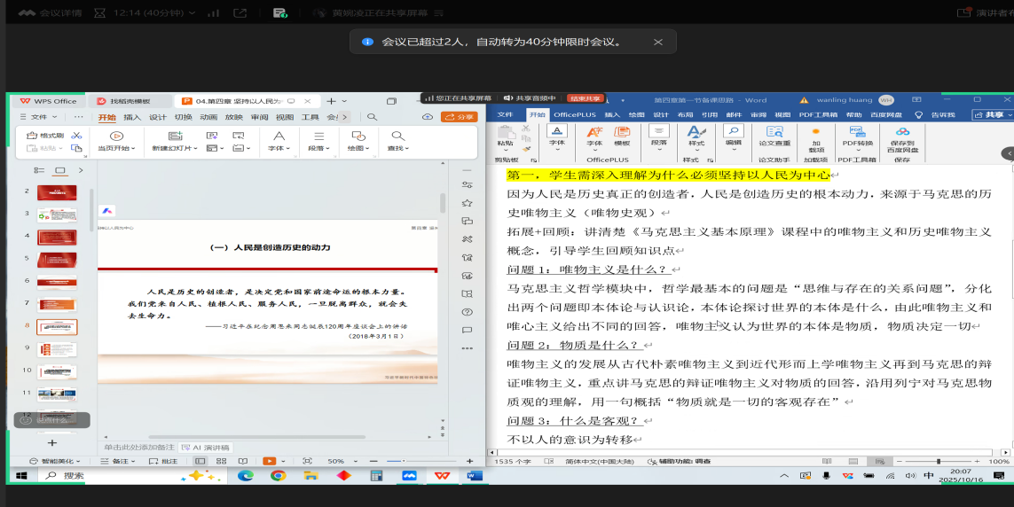 为深入贯彻落实立德树人根本任务,切实提升《习近平新时代中国特色社会主义思想概论》课的教学质量与育人实效,推动党的创新理论进教材、进课堂、进学生头脑,10月16日晚,今年会习近平新时代中国特色社会主义思想概论教研室举行了该课程的集体备课活动。jinnianhui今年会副院长刘德彰、院长助理(兼教研室主任)杨志明及相关任课教师参加。
