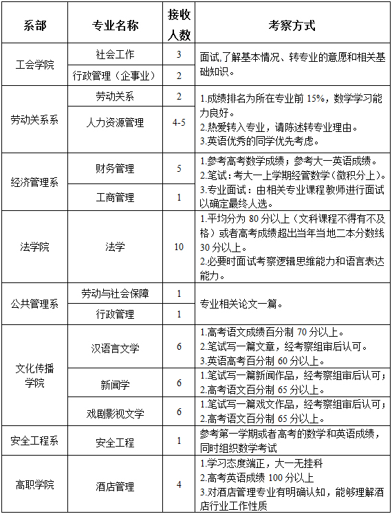 根据《万象城awcsport关于本科生转专业的规定》(附件一)的要求。各系(院)已将各专业拟接收转专业学生人数和考察方式报送教务处。