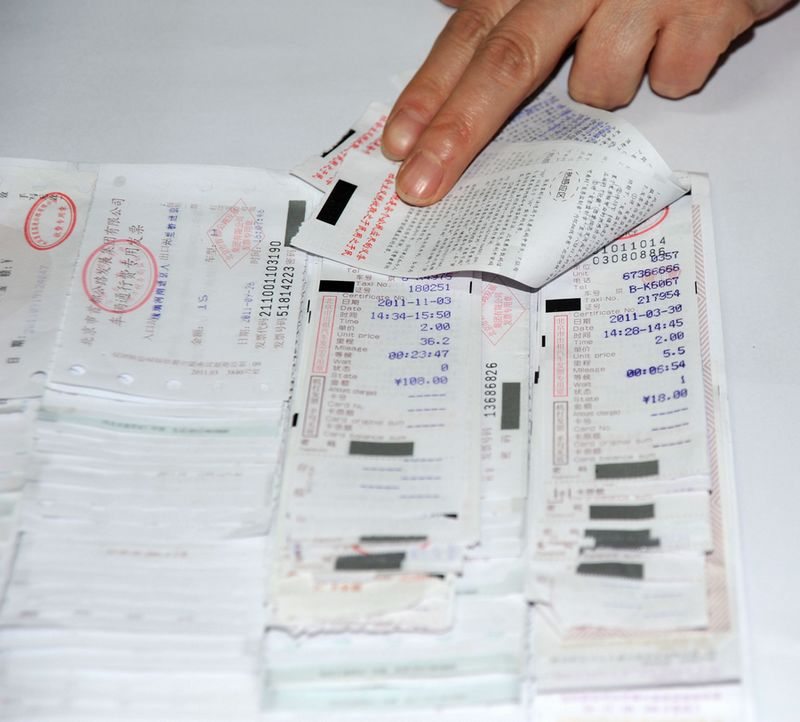 原始凭证以错开层叠的形式粘贴在A4纸上,不要遮掩票据金额。