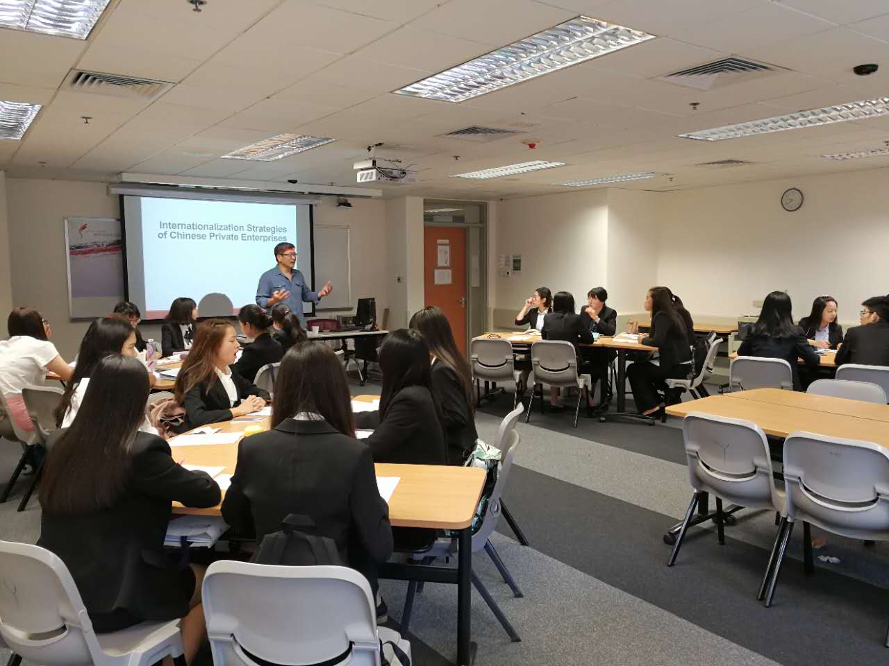 香港理工大学是一所公立综合性大学,成立于1937年,为香港历史最悠久的大学之一。访学期间,万象城官网学生走进香港理工大学课堂,体验全英文授课环境,学习了“领导力与团队建设”、“基础调解技巧”、“ 人力资源在企业中的作用”、“中国私营企业的国际化战略”课程并与教授充分交流。访学结束之际,万象城官网学生结合学习主题用英语进行了汇报,他们的课堂表现、英语交流能力、专业知识水平和团队合作能力等方面都获得授课教授的赞许,并获颁课程学习证书。