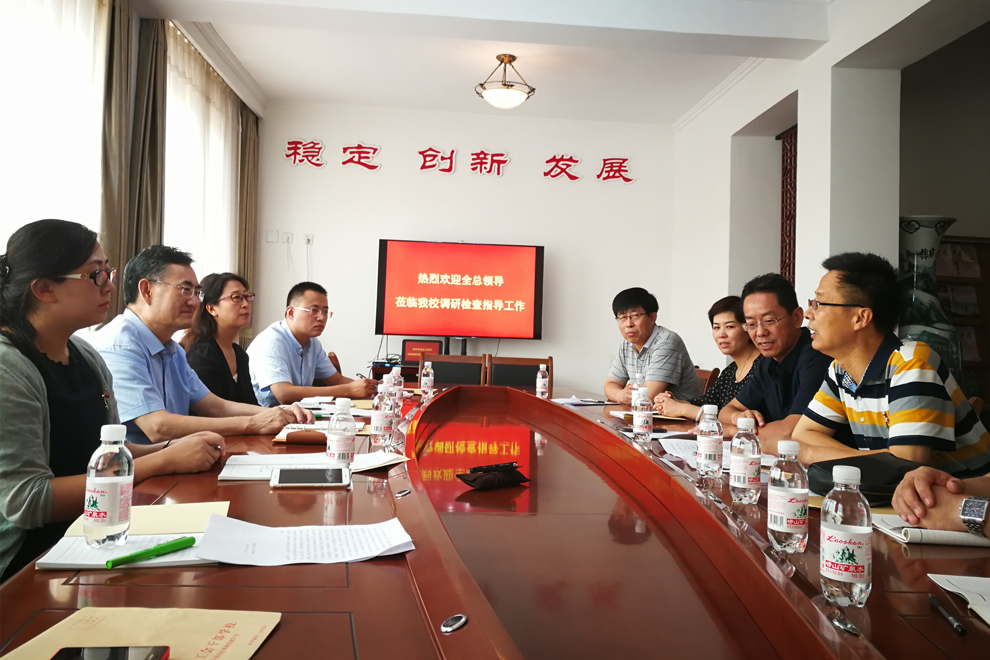 青岛市总工会巡视员王建民,学校党委常委、科研处处长兼经济管理系主任燕晓飞,学校党委组宣部、干部人事处的负责人和工作人员等参加了此次调研。