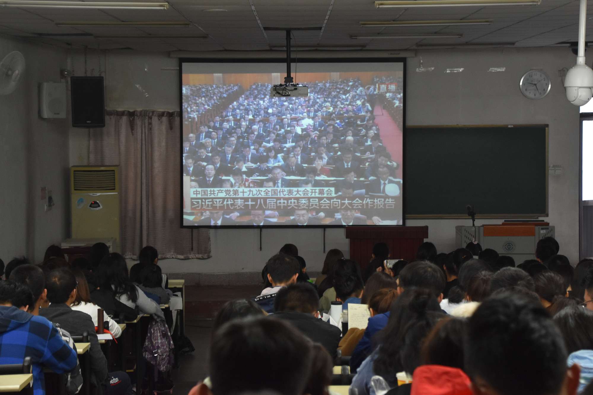 学校党委组织师生员工收看中国共产党第十九次全国代表大会开幕盛况
