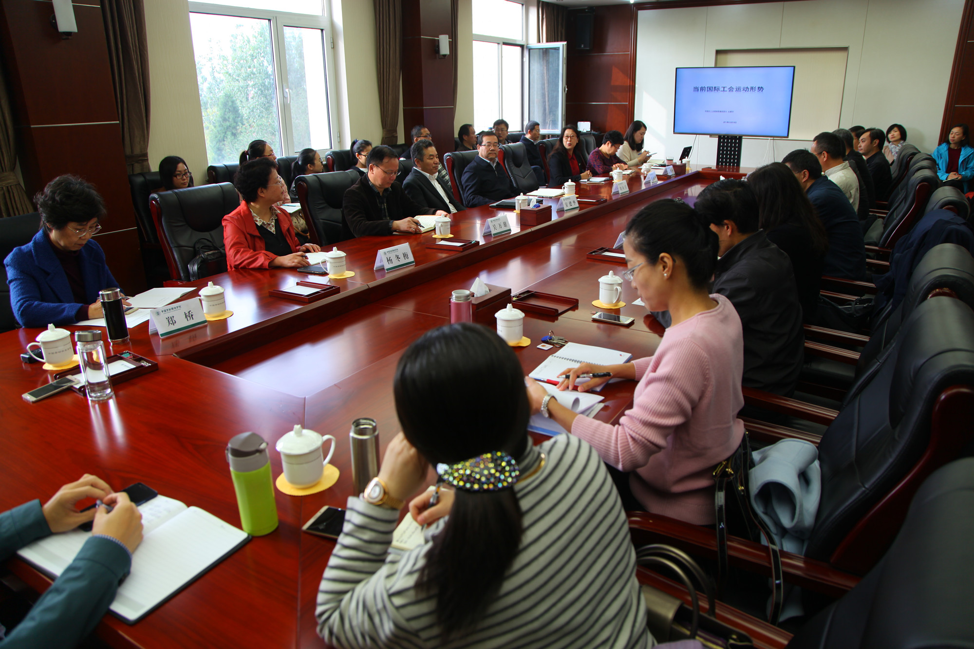 10月19日上午,学校第九场“劳动关系•工会学术沙龙”在北京校区成功举办。本次学术沙龙的主题是“国际工运的新趋势与我国工会的对外交往”,特别邀请了中华全国总工会国际联络部部长安建华主讲。学校党委副书记、校长刘向兵,党委常委、副校长吴万雄,党委常委、科研处处长兼经济管理系主任燕晓飞,党委常委、工会学院院长杨冬梅出席沙龙,部分院(系、部)负责人和师生代表共40余人参加了沙龙。沙龙由燕晓飞教授主持。