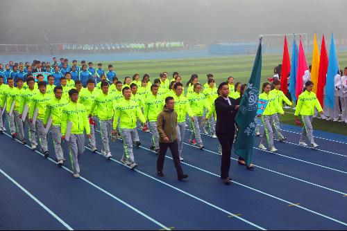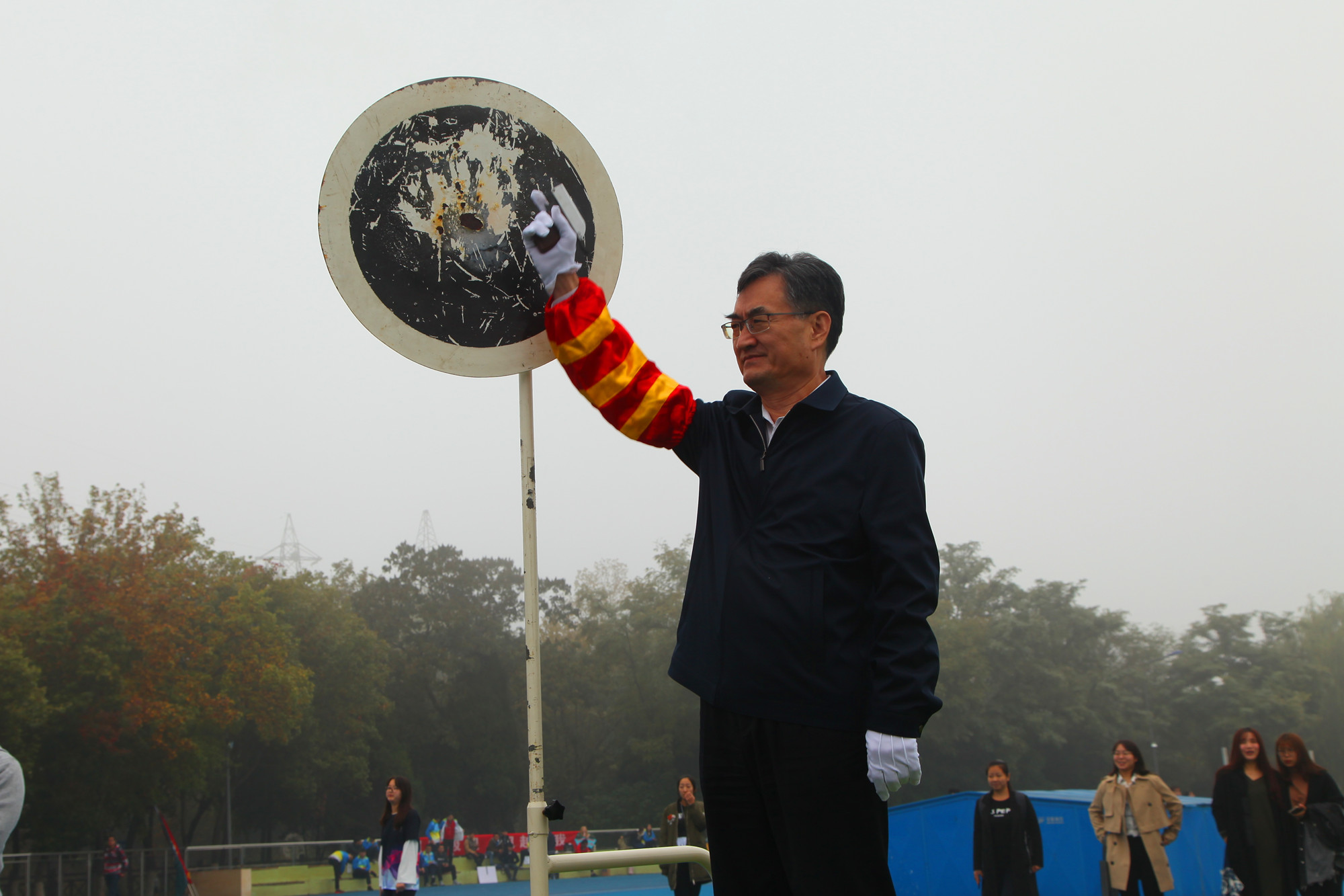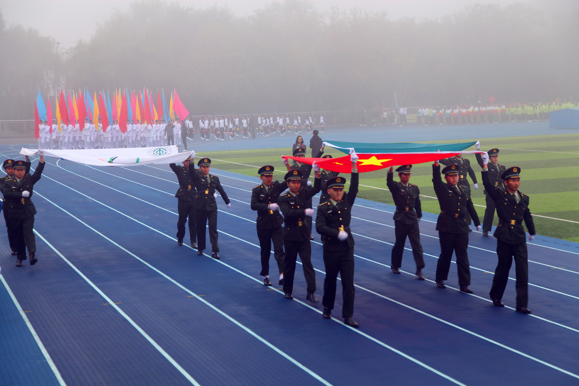 庄严的升旗仪式结束后,刘向兵校长致开幕词。刘校长代表学校党委和领导班子,向刻苦训练、积极参赛的所有运动员致以亲切的问候,向参与本届运动会筹备和组织工作的所有师生表示衷心的感谢。他指出,体育运动不仅是一种锻炼身体的方式,还是一种教育教学的手段,更是一种能为社会创造价值的劳动。学校人才培养目标的实现,必须充分发挥体育在人才培养特别是劳动情怀培养中的重要作用,推动学校体育事业蓬勃发展并不断开创新局面。他表示,一直以来,学校党委高度重视体育工作,坚持竞技体育与群众性体育活动并重,加大资金投入,增设运动场馆,大力推进校园体育文化建设,不断提升师生员工体育运动参与度,取得了丰硕成果。希望全体师生员工以此次运动会为契机,不断加强体育锻炼,掀起学校全民健身的新高潮,激发出奋发向上的学习和工作热情,以健康的体魄出色完成学习和工作任务,以阳光的心态从容应对困难与挑战,团结奋进、顽强拼搏,为推动学校各项事业再上新台阶而共同努力,以优异成绩和良好精神风貌向党的十九大献礼。