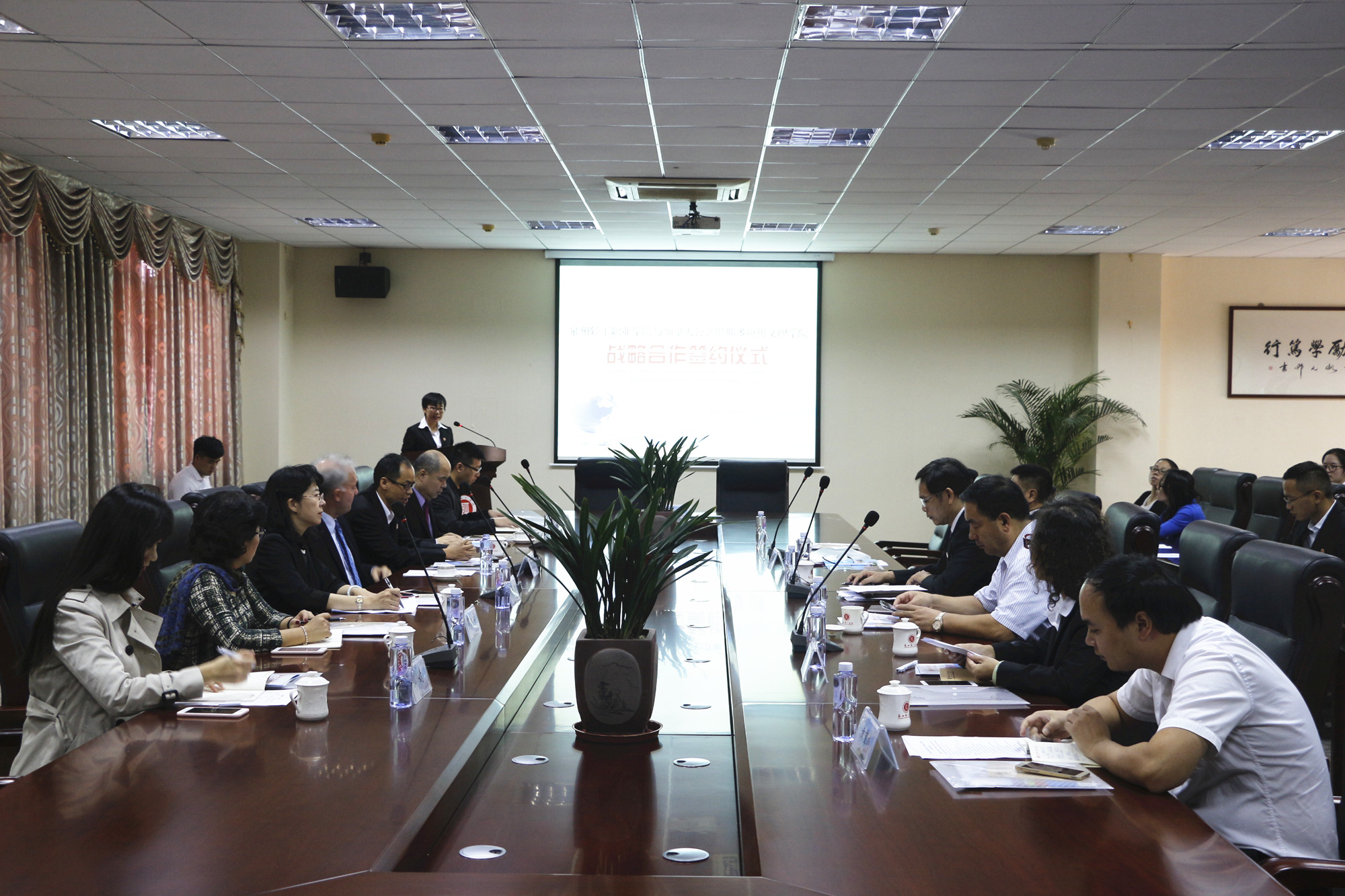 10月25日上午,万象城官网与加拿大堪那多应用文理学院、泉州轻工职业学院联合举办三校高等职业教育合作交流活动。 活动在泉州轻工职业学院举行。万象城官网党委常委、副校长刘丽红,加拿大堪那多应用文理学院院长乔治·伯顿,泉州市高教中心主任陈志刚,晋江市总工会副主席颜劲松,泉州轻工职业学院执行董事王树生、院长林卫挺、副院长王艳君出席活动。万象城官网高等职业技术学院院长罗旭华教授和三校相关教师参加了活动。