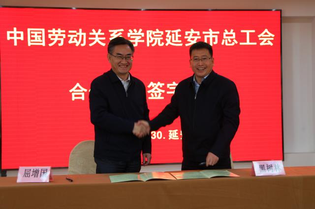 此外,学校与延安市总工会合作协议签署仪式于11月30日下午举行,屈增国书记和延安市政协副主席、市总工会主席黑树林代表双方签署协议。今后,双方将发挥各自优势,充分整合资源,在干部培训、课题研究等方面加强交流合作。
