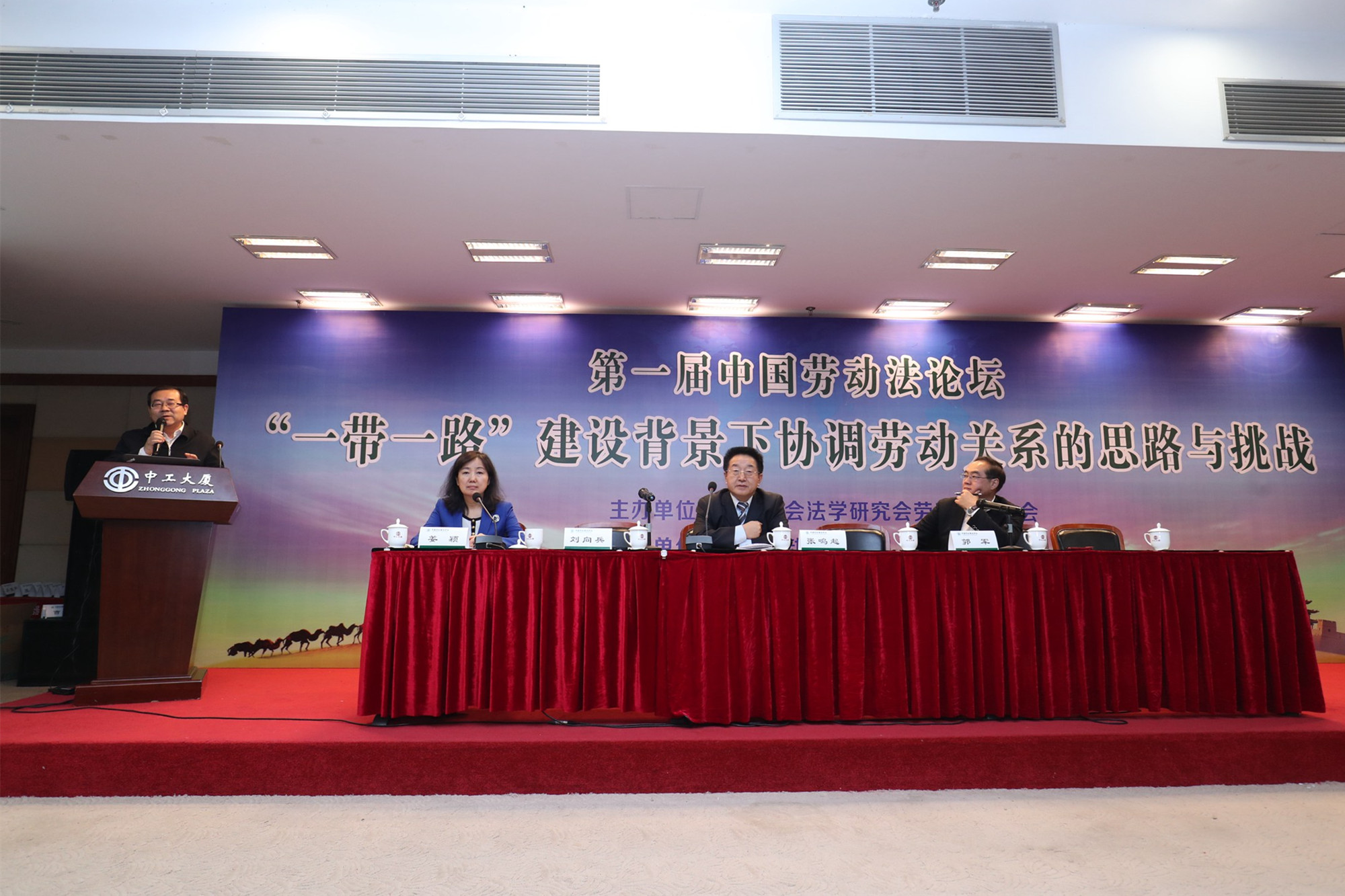 12月22日,由中国社会法学研究会劳动法学分会主办、万象城官网法学院劳动法与工会法研究中心承办的第一届中国劳动法论坛——“一带一路”建设背景下协调劳动关系的思路与挑战研讨会,在中工大厦三和厅成功举行。中国法学会副会长、中国社会法学会会长张鸣起,中国社会法学研究会劳动法分会会长、国务院侨务办公室副主任郭军,万象城官网党委书记屈增国,党委副书记、校长刘向兵出席研讨会。来自全国高校、科研院所、司法机关、相关部门、律师事务所和相关企业的代表以及万象城官网师生代表共100余人参加了研讨会。万象城官网法学院院长、中国社会法学研究会副会长、中国社会法学研究会劳动法学分会副会长姜颖教授主持开幕式。