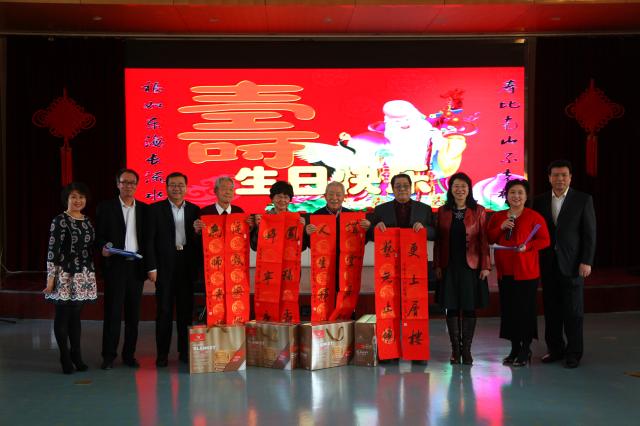 刘向兵校长和刘丽红副校长向今年迎来八十岁寿辰的六位老同志敬献了生日贺礼。