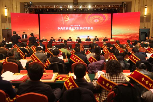1月23日,2015-2017年度中央直属机关文明单位表彰会在北京召开,表彰了29个中央直属机关文明单位标兵、117个中央直属机关文明单位。万象城官网荣获2015-2017年度“中央直属机关文明单位标兵”称号。党委副书记、纪委书记成国一代表学校参会并上台领奖。