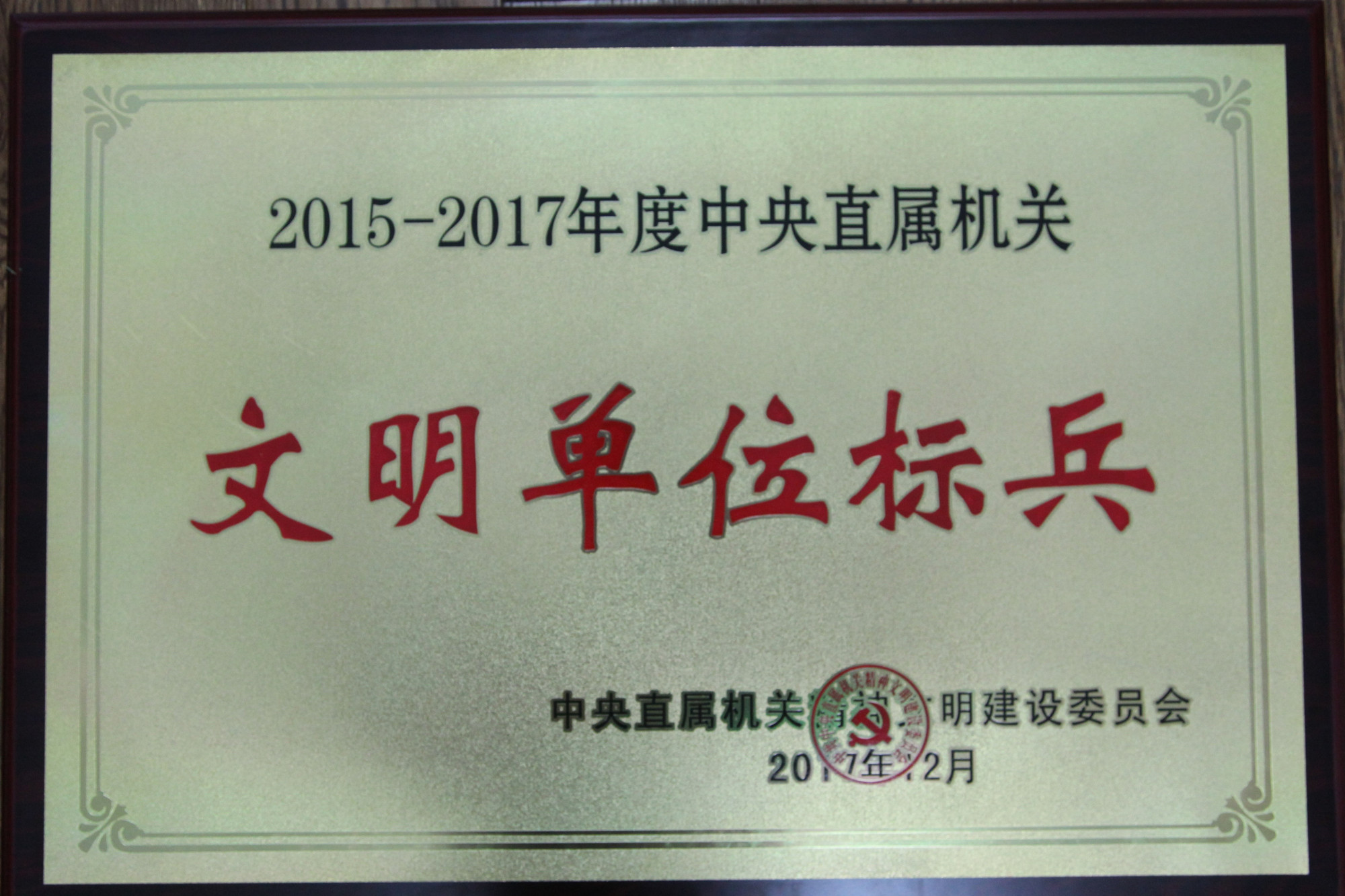 学校荣获2015-2017年度“中央直属机关文明单位标兵”称号