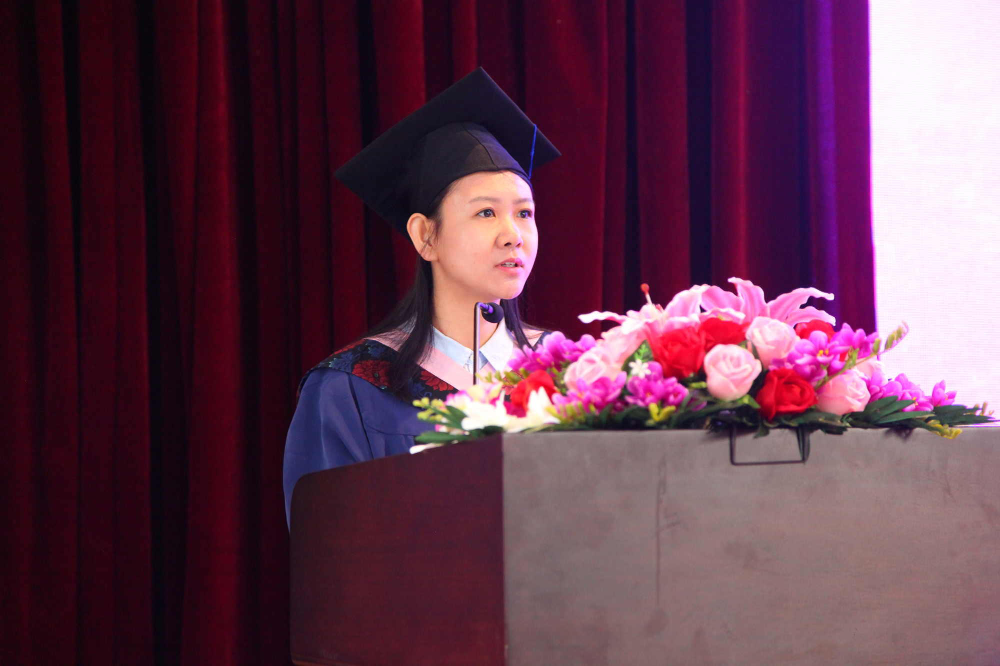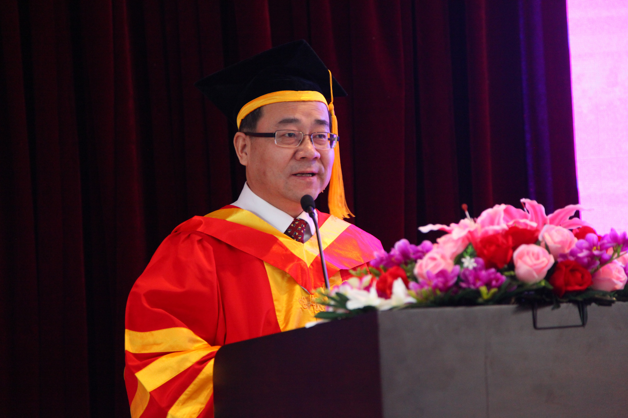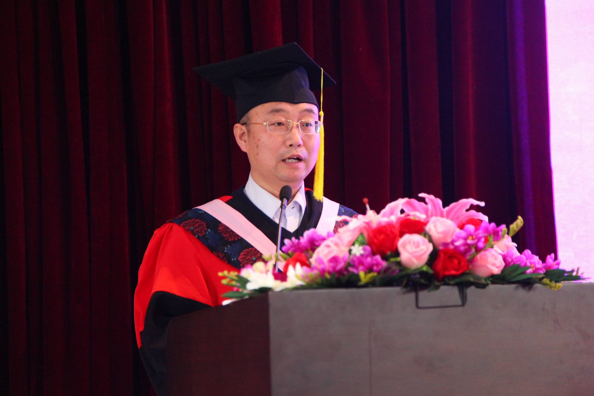 典礼上,刘向兵校长作为学校学位评定委员会主席,代表学校郑重地为毕业生一一拨过流苏、授予学位、颁发学位证书。学校领导屈增国、成国一、刘丽红、吴万雄为毕业生颁发毕业证书。