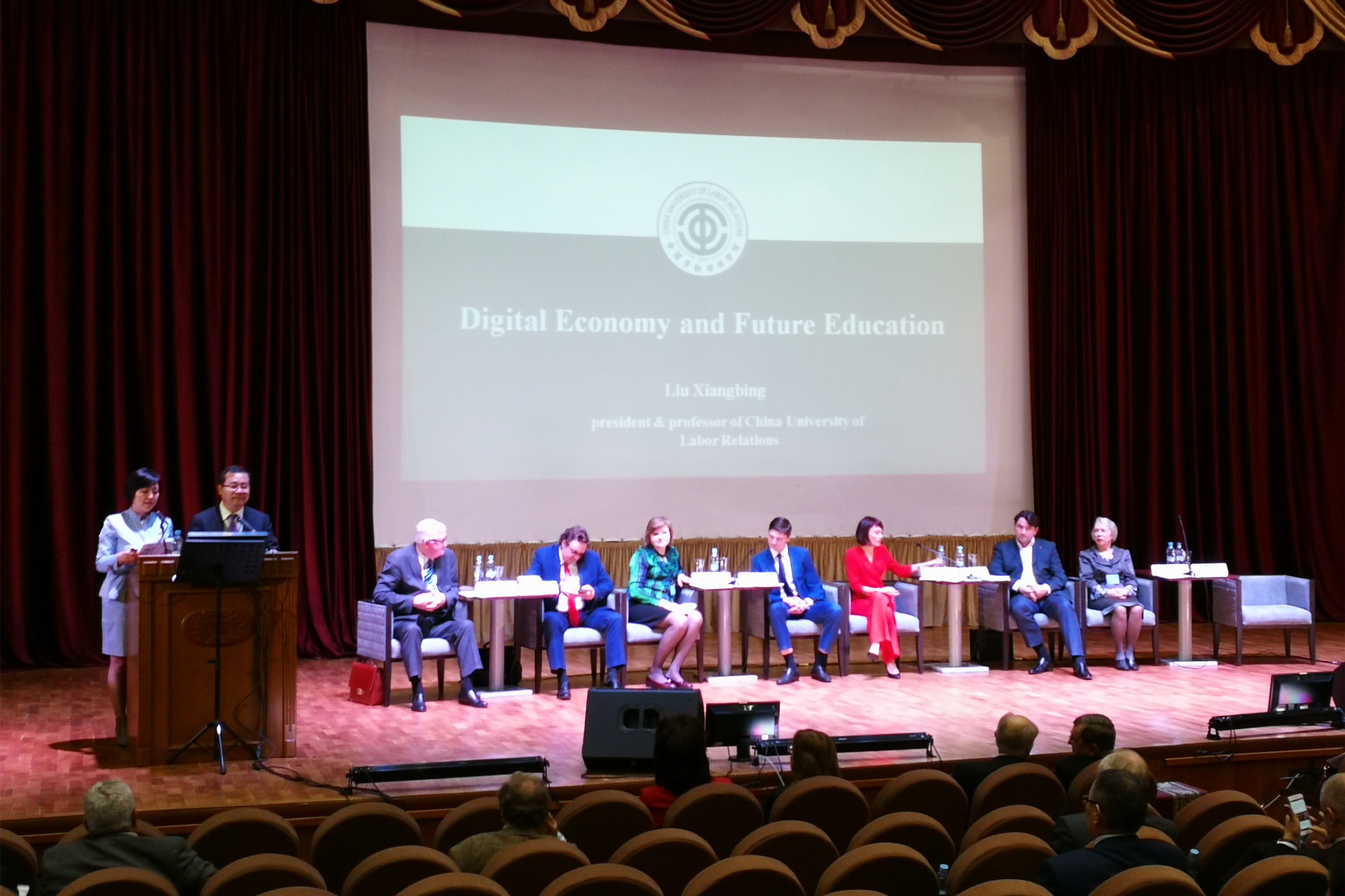 刘向兵校长以《数字经济与未来的教育》为题做主旨报告,提出在第三次科技革命的时代浪潮及数字经济正在改变世界的“未来已来”两大背景下,新一轮世界科技革命和产业革命正在蓬勃发展,中国未来的教育正在以下三个方面紧跟时代潮流:一是在技术上,充分利用信息技术,加速教育信息化建设;二是在内容与方式上,发展STEAM教育,弥补时代需求与人才培养的鸿沟;三是在制度上,积极推进终身教育,建构以正规教育为骨架的终身学习体系。发言得到与会各方的一致认同。劳动关系系主任乔健副教授在“数字经济下社会参与和工会运动的新特征”分论坛中以《中国特色工会体系的提质增效》为题发言。教务处副处长许艳丽教授向大会提交论文《零工经济对中国社会保障制度带来的新挑战》。