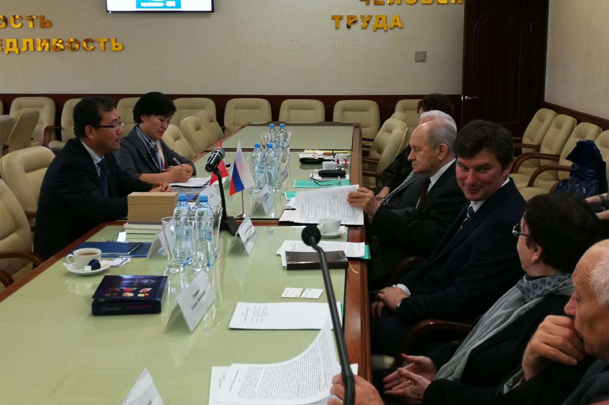 4月18日,俄罗斯劳动与社会关系学院名誉校长尼古拉•格里琴科热情欢迎了刘向兵校长一行,介绍了教学及科研组织培养劳动社会领域人力资源国际联合会的情况,并详细介绍了以纪念柯斯金教授学术成就为主的第一届国际学术研讨会的情况。刘向兵校长围绕万象城官网历史沿革、行业背景、劳动学科特点等方面进行了介绍,高度赞扬了柯斯金教授在上世纪50年代作为苏联劳动经济学专家对万象城官网干部培训及教育教学的大力支持和帮助,回顾了两校源远流长的合作关系,希望围绕两校现实发展开展多元合作,巩固两校友谊和两校师生情谊。双方就继续扩展师生交流、互换学生、教师访学、招收留学生、教学科研合作、互换学术刊物和研究成果等领域充分进行协商并交换了意见,达成了初步共识。刘向兵校长一行还参观了该校校园、教学及生活设施、图书馆、博物馆等,并进入课堂与学生进行交流座谈。