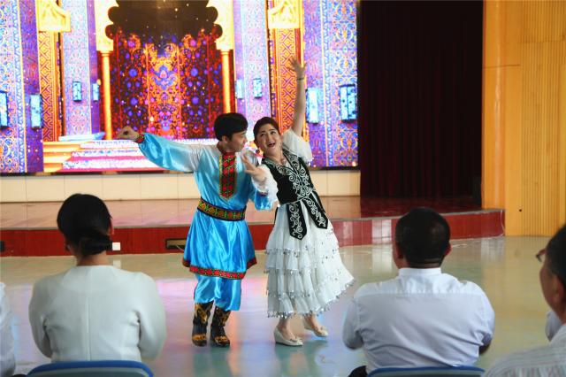 2017级劳模本科班学员阿依曲莱克.图尔迪拜克、赛福丁·伊斯热依力,热情洋溢充满异域风情的新疆舞蹈《跳起来》,把现场的氛围推向了高潮。