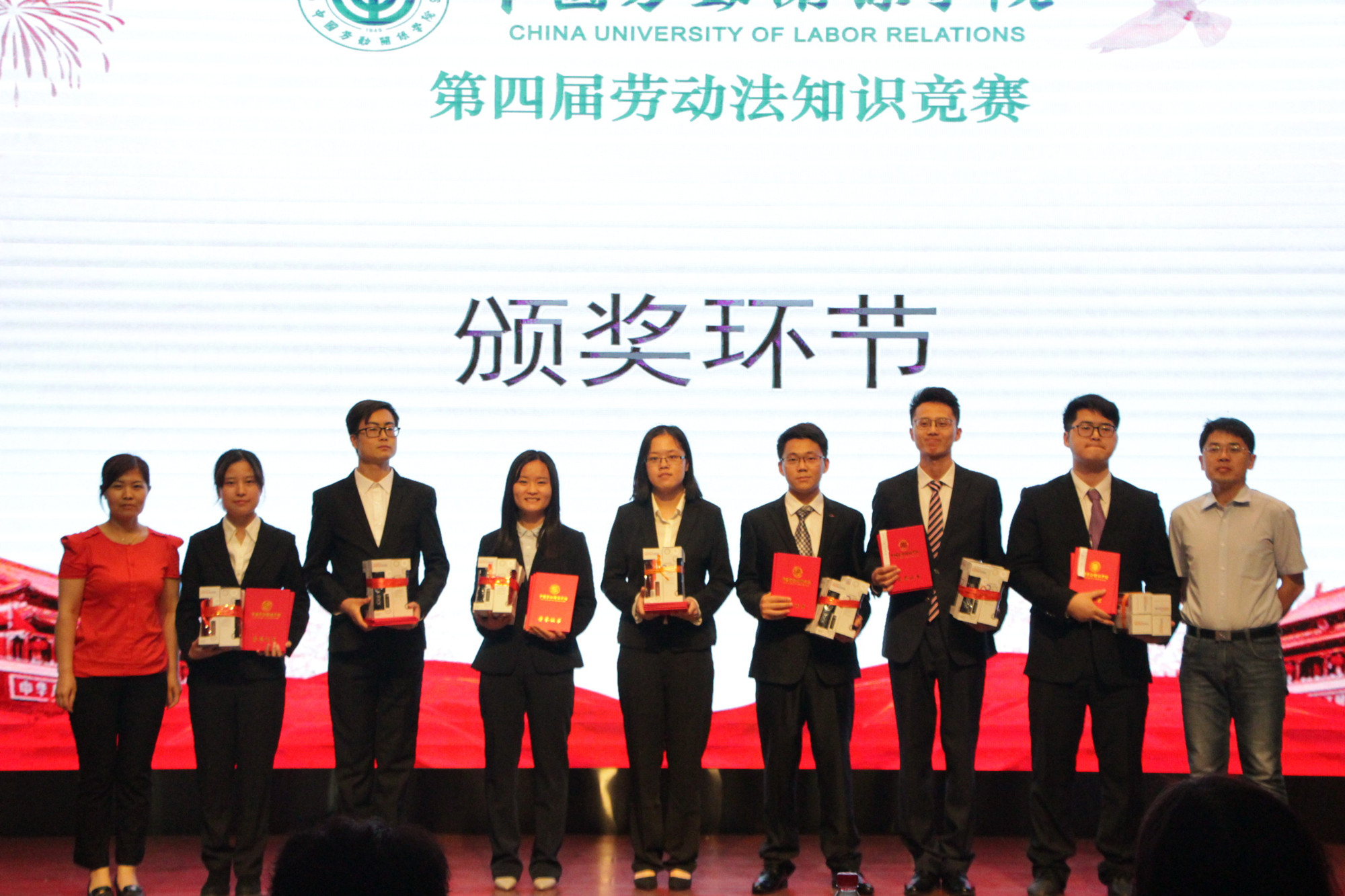本次比赛分为初赛、半决赛和决赛3个阶段。经过各院(系)初赛选拔,共有13支参赛队伍进入半决赛。经过半决赛中必答题和抢答题两轮比拼,来自文化传播学院、法学院、劳动关系系和工会学院的6支队伍突出重围,进入决赛。