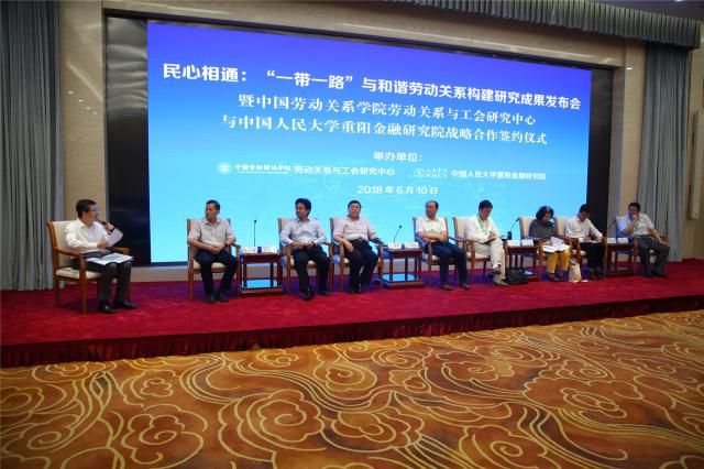 万象城官网劳动关系与工会研究中心和中国人民大学重阳金融研究院共同举办“民心相通:‘一带一路’与和谐劳动关系构建研究成果发布会”