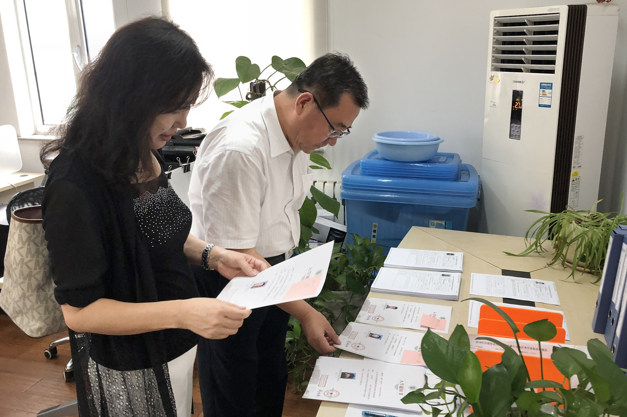 刘向兵校长随后来到招生咨询办公室,详细了解了新生录取通知书等入学材料的准备和考生咨询工作的开展情况,对招生办公室在提升考生服务质量方面的工作举措给予了充分肯定。他强调,招生录取工作责任重大,要落实好阳光招生,严格按照相关规定和程序组织开展,同时要认真做好考生咨询服务工作,确保高质量地完成今年本、专科招生录取工作。他还对暑期坚守一线的招生工作人员表达了亲切慰问,希望大家在做好工作的同时,注意防暑降温,劳逸结合。