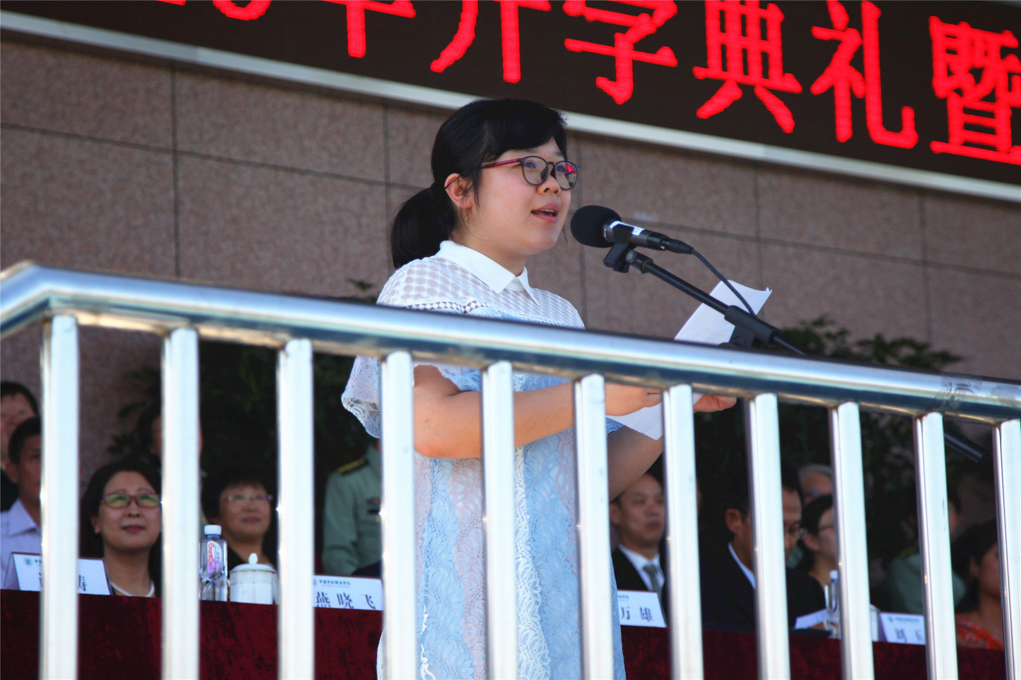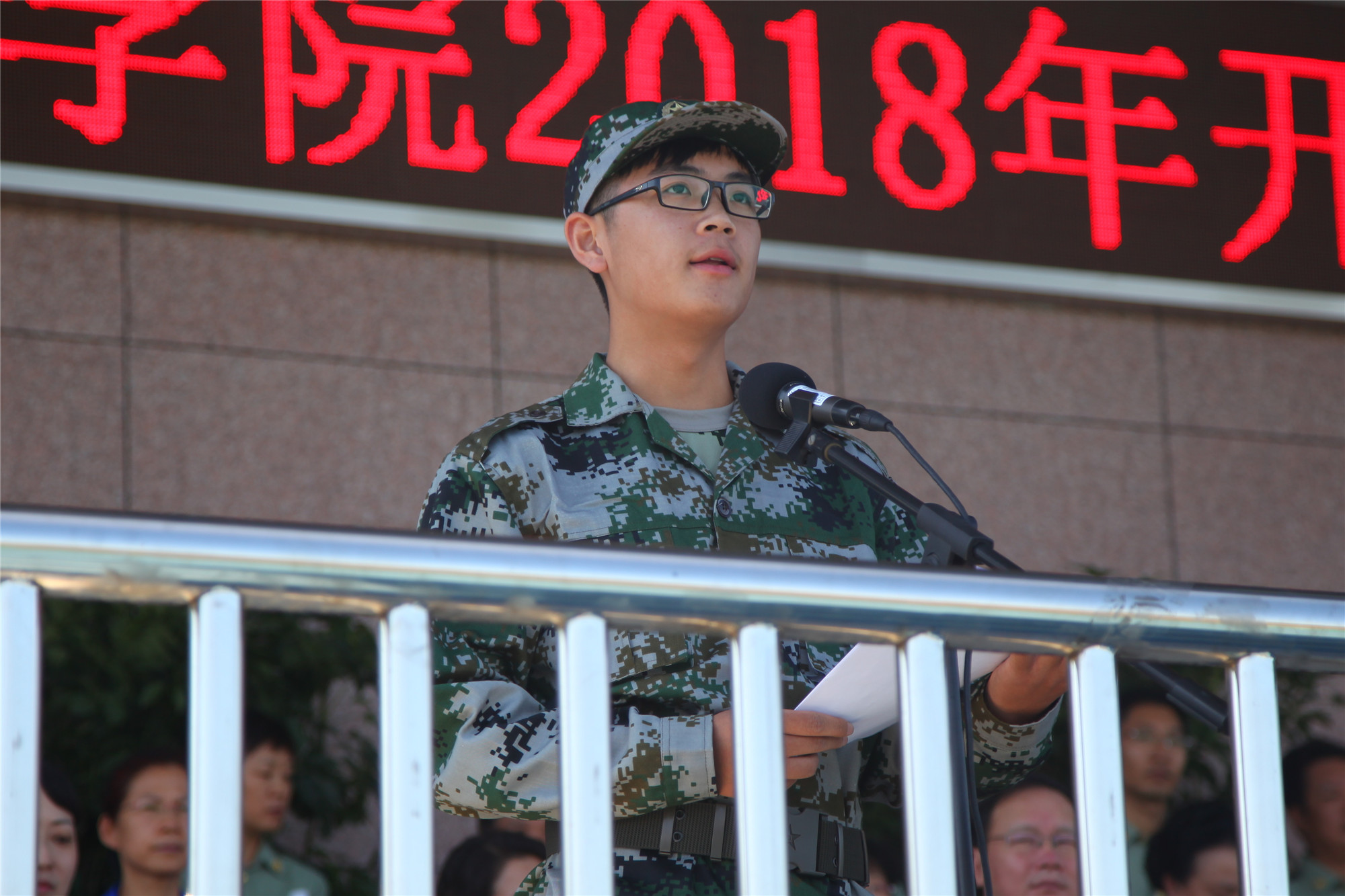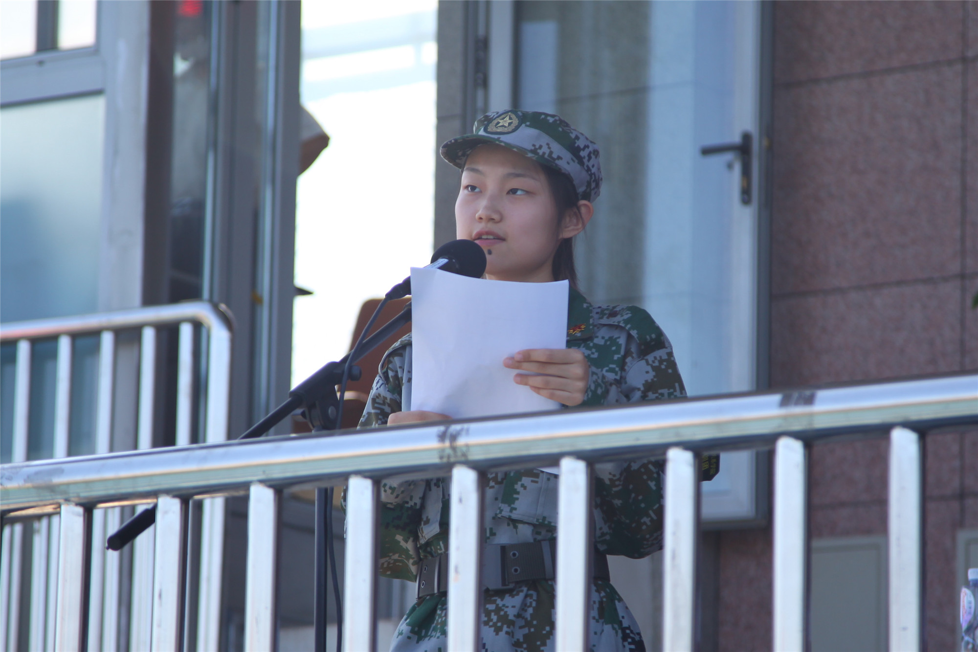 刘丽红副校长宣读国防教育团1号令,任命了国防教育团连级以上干部。