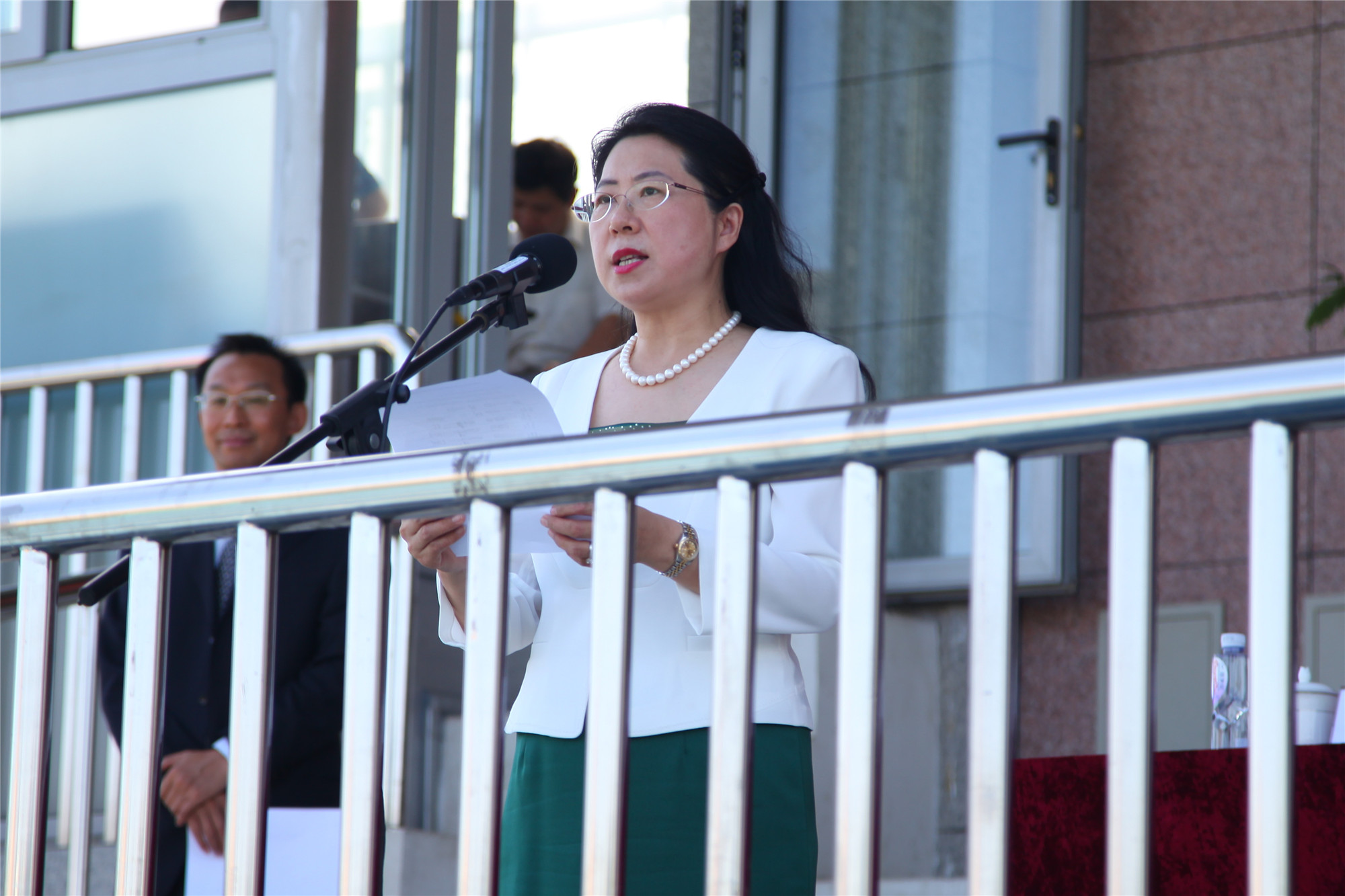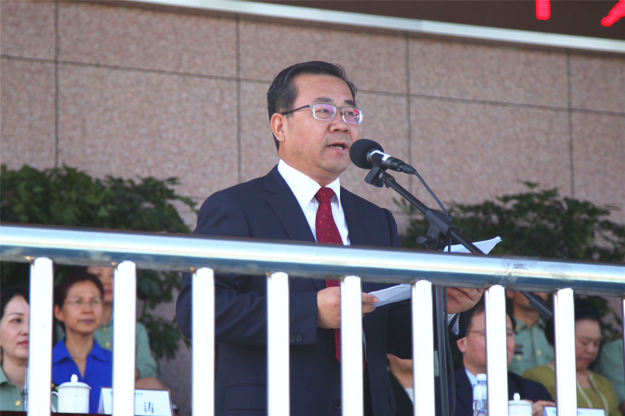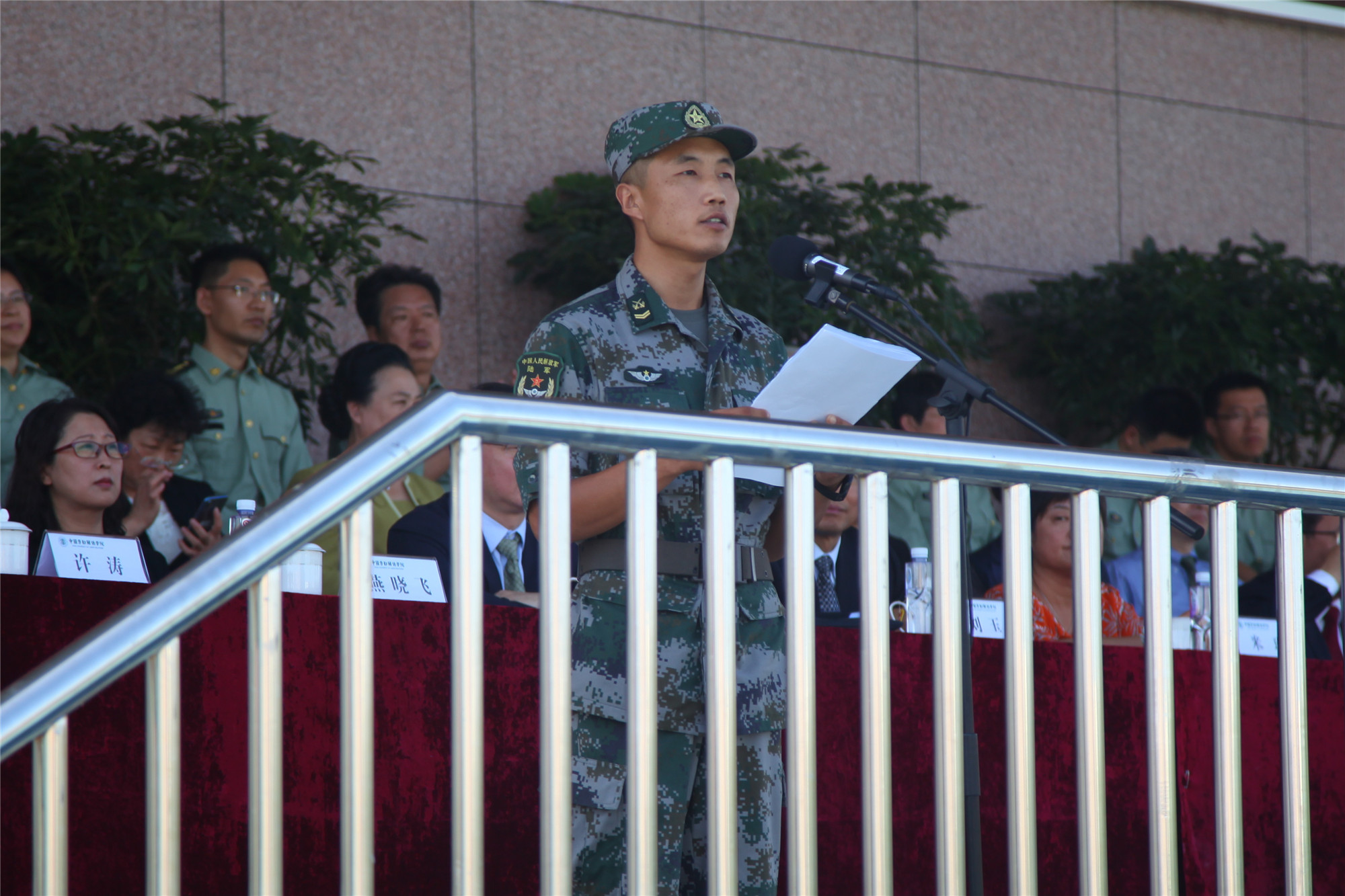 刘丽红副校长宣读国防教育团1号令,任命了国防教育团连级以上干部。