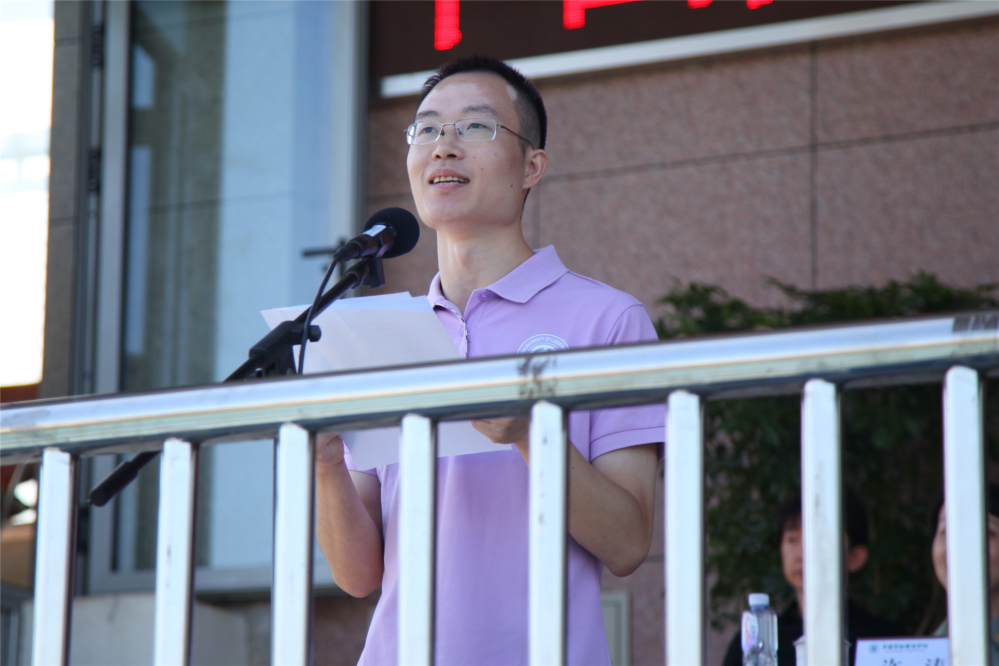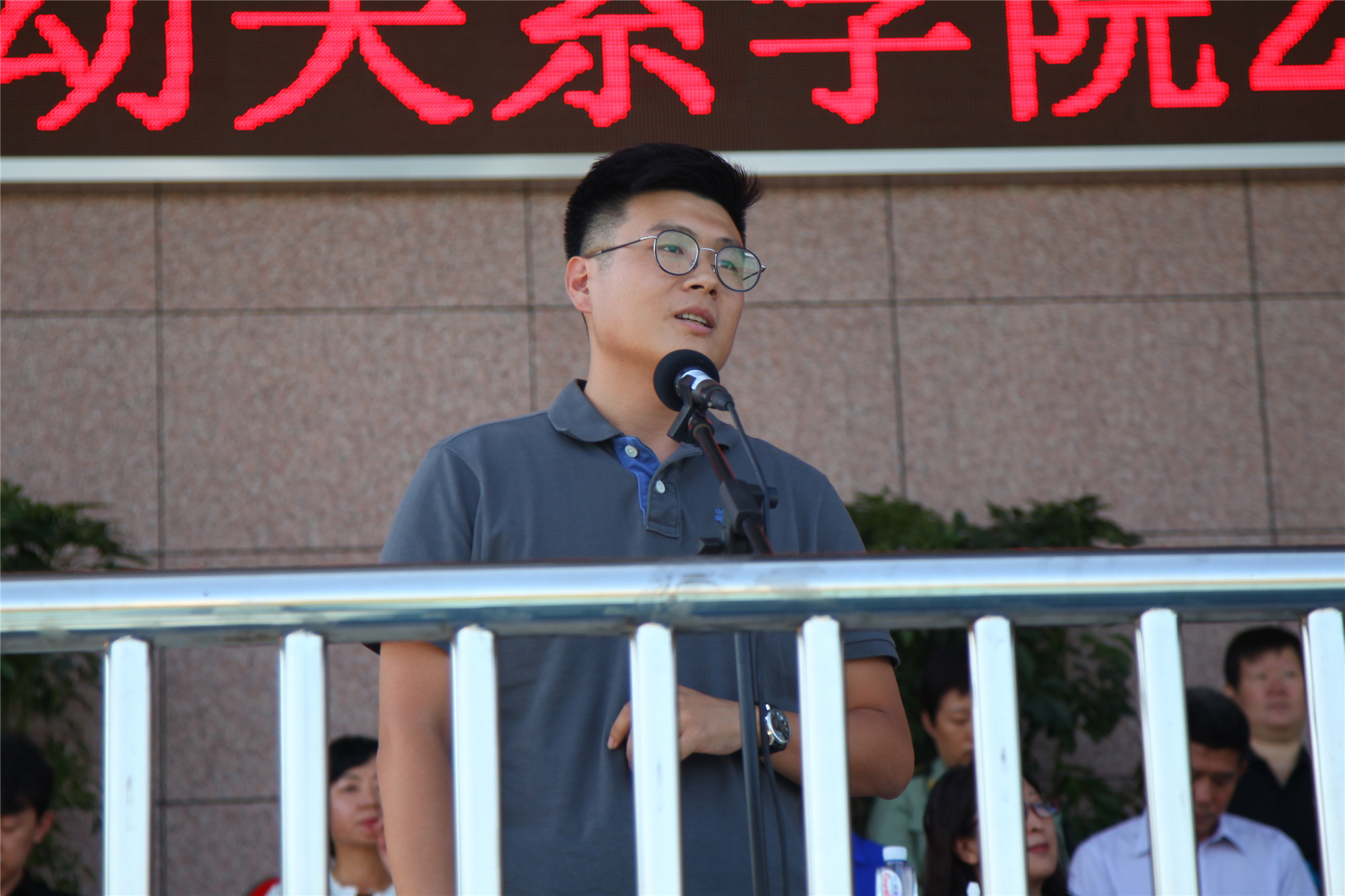 2017级工商管理专业崔寰同学代表老生发言。他从人生方向、内在修养、勤奋刻苦三个方面与新生分享了自己的感悟。校友代表、2010届文化传播学院毕业生、中国邮政报记者吕磊在发言中,通过自己数年新闻从业者的切身经历勉励大家要坚定梦想,在拼搏奋斗中砥砺前行。