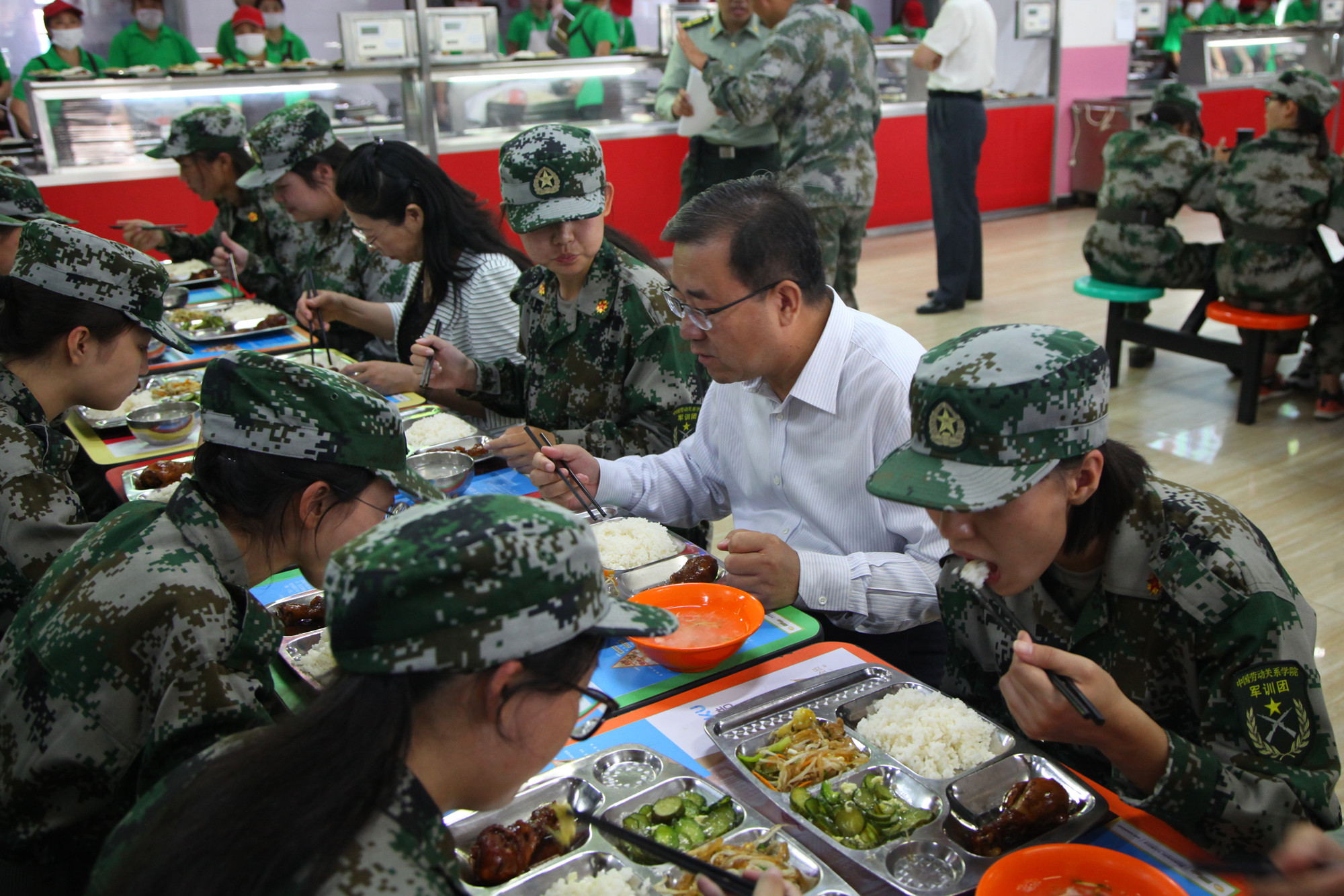 中午时分,刘向兵校长一行来到综合楼一层食堂,与一营工会学院和六营安全工程系的同学们共进午餐。在餐前讲话中,刘向兵校长代表学校党委对施训部队的教官们表达了诚挚谢意,对随训老师和相关部门的工作予以充分肯定。他指出,在开营短短5天内,同学们取得了很好的训练成绩,希望大家继续保持良好的训练状态,保持良好的体力精力,发扬不怕苦不怕累的精神,完成各项训练任务,在军训闭营式的检阅中展示出最好的精神面貌和最佳的训练成绩。