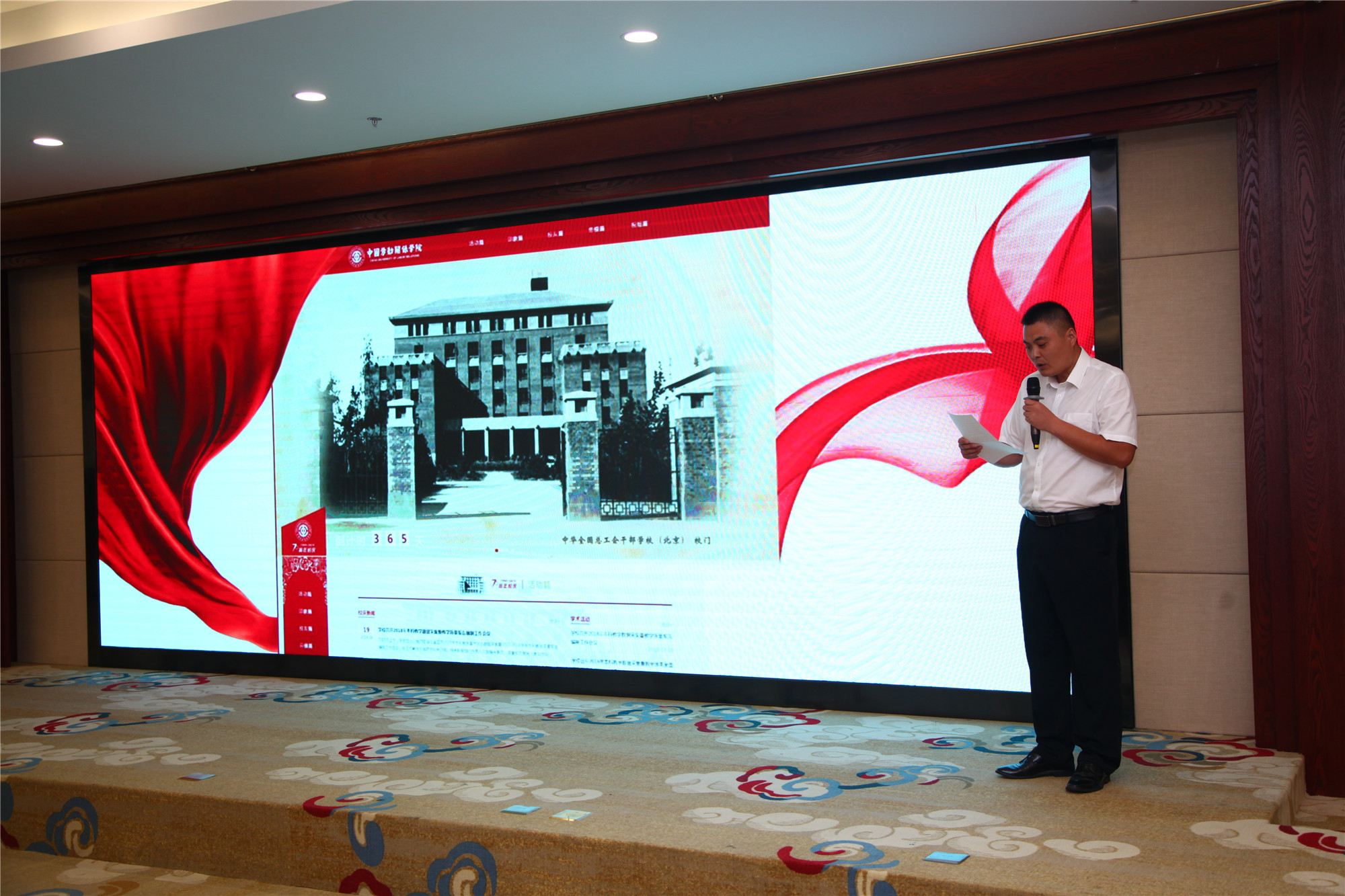 七十载栉风沐雨,弦歌不辍;新时代不忘初心,砥砺前行。9月25日上午,学校建校70周年校庆年启动仪式在中工大厦三和厅隆重举行。学校领导屈增国、刘向兵、成国一、刘玉方、刘丽红、吴万雄、郭孝实,党委常委燕晓飞、杨冬梅和学校教职工代表、校友代表、在校生代表共100余人欢聚一堂,共同见证这激动人心的时刻。仪式由吴万雄副校长主持。