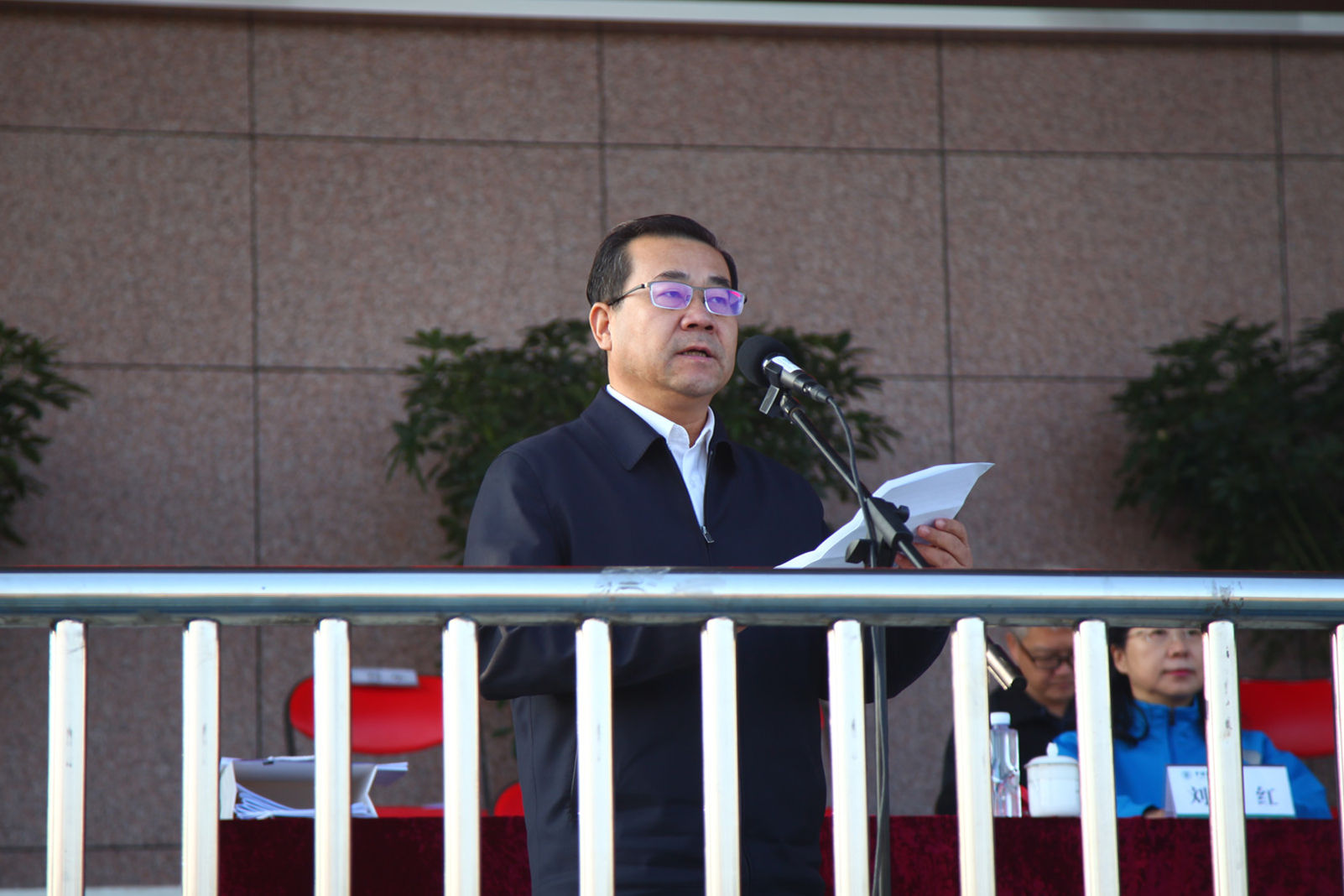 庄严的升旗仪式结束后,刘向兵校长致开幕辞。他代表屈增国书记和学校领导班子,向本届运动会的召开表示热烈祝贺,向精心筹备运动会的所有工作人员表示诚挚谢意,向全体运动员、裁判员表示亲切慰问和良好祝愿。他指出,体育运动是身心全面参与的一种劳动,希望同学们发扬体育精神、弘扬劳动精神,用体育这种辛勤劳动、诚实劳动、创造性劳动打造属于自己的青春版本。他表示,一年来,在全校师生的积极参与和共同努力下,学校的竞技体育成绩斐然,群众体育蓬勃开展,取得了丰硕成果。希望通过运动会这一形式,在学校进一步形成热爱体育运动、弘扬体育精神的浓厚氛围,将体育锻炼作为每一位师生的良好习惯,并将体育运动中所蕴涵的不断进取、勇攀高峰的拼搏精神转化为“学回信精神、迎七十校庆、创特色一流”的强大动力,加快实现把学校建成劳动关系和工会领域国内一流、国际知名大学的宏伟目标。