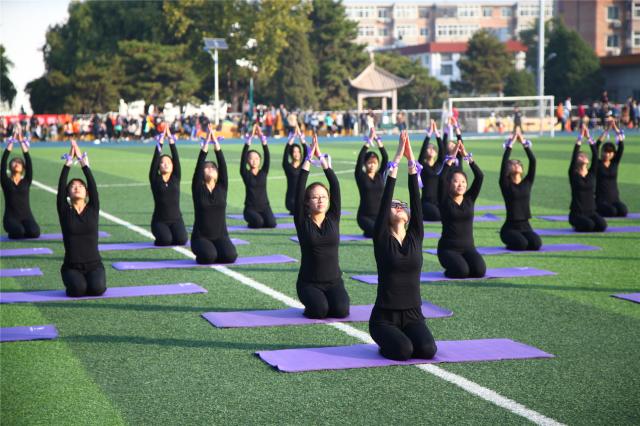 在国旗护卫队的引领下,由高等职业技术学院同学们组成的彩旗队、花束队及各院(系)运动员方队意气风发、精神抖擞、步伐矫健地依次通过主席台,充分展现出同学们朝气蓬勃的青春活力和奋勇拼搏的饱满热情。随后还分别进行了体育课程展示、瑜伽和体育舞蹈表演。