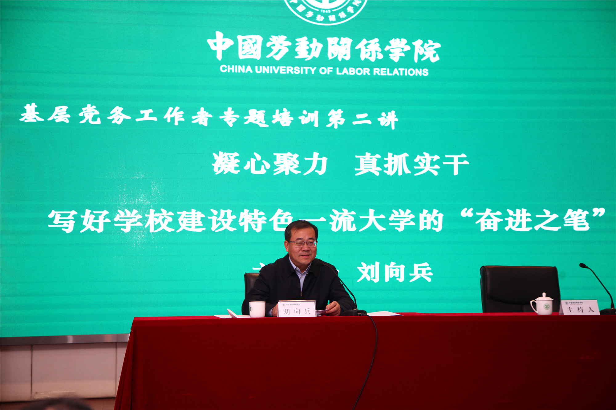 12月7日上午,学校在北京校区508教室开展基层党务工作者专题培训第二讲。党委副书记、校长刘向兵以《凝心聚力 真抓实干 写好学校建设特色一流大学的“奋进之笔”》为题做讲座。学校党委委员、纪委委员,各党总支书记(副书记)、总支委员,在职教工党支部书记(副书记)、支部委员,学生党支部书记(副书记)、支部委员,及部分职能部门全体工作人员共计110余人参加了培训。讲座由党委副书记、纪委书记成国一主持。