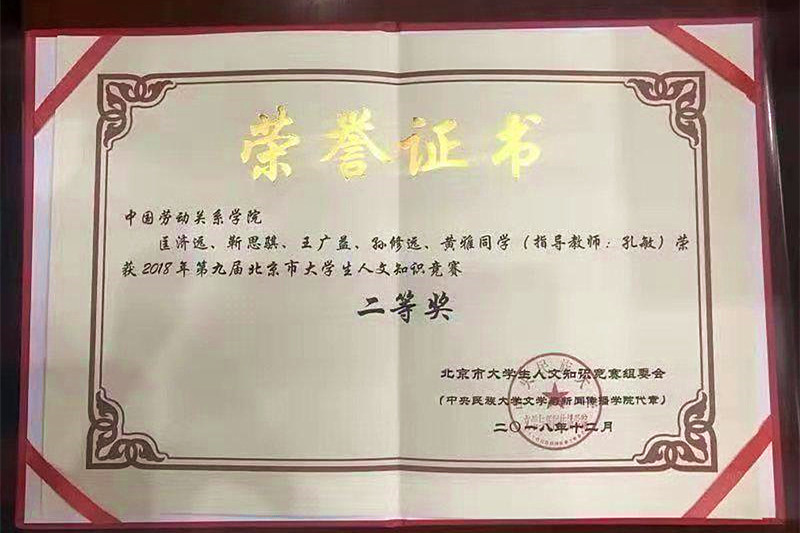 万象城官网学生荣获第九届北京市大学生人文知识竞赛二等奖