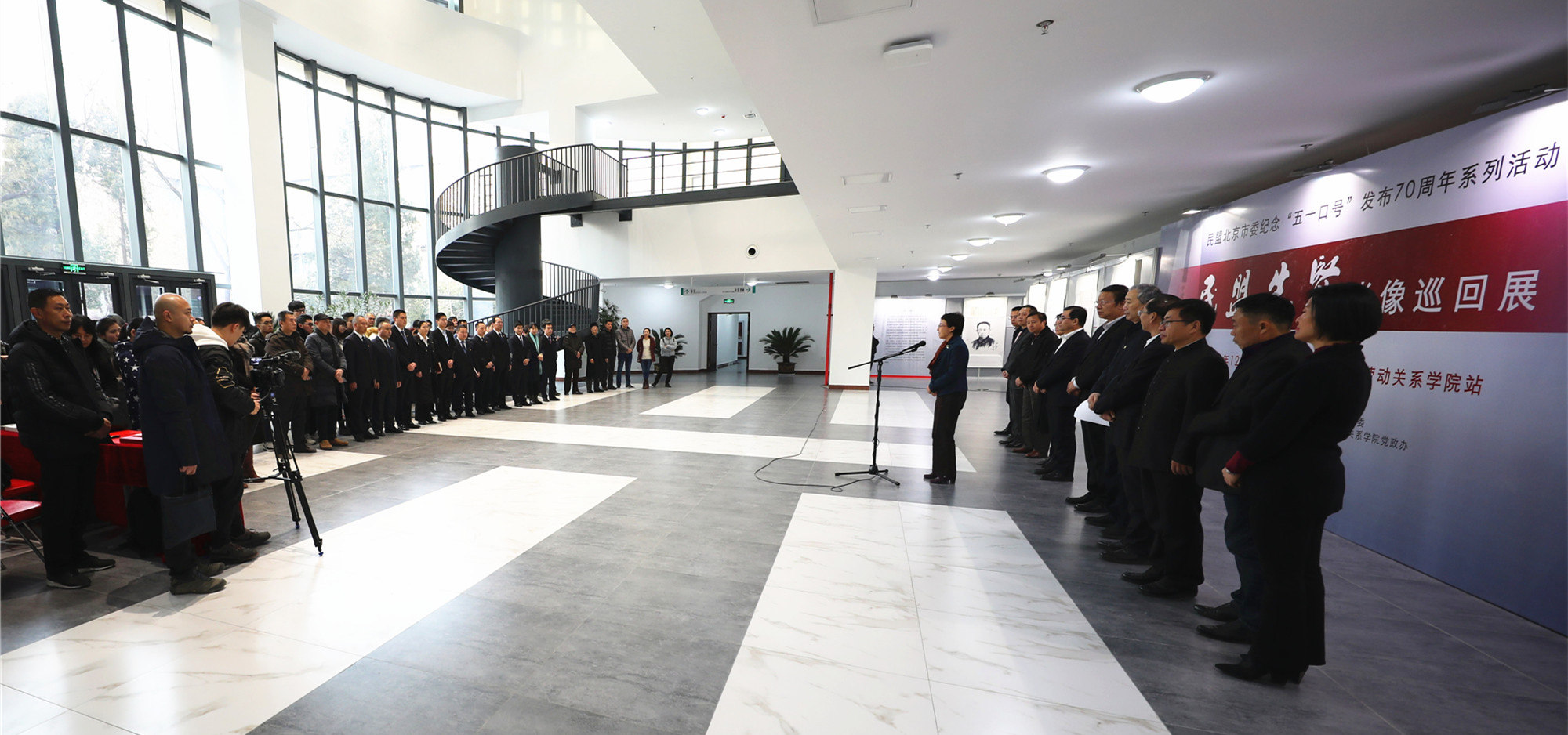 12月21日,民盟北京市委在万象城官网北京校区综合教学楼一楼大厅举办纪念“五一口号”——民盟先贤肖像巡回展启动仪式。全国政协常委、民盟中央副主席、北京市政协副主席、民盟北京市委主委程红,中华全国总工会党组成员、经费审查委员会主任李晓钟,万象城官网党委副书记、校长刘向兵,民盟北京市委专职副主委宋慰祖,民盟北京市委秘书长严为,民盟中央委员、民盟北京市委常委、民盟海淀区委主委、海淀区政协副主席、北京师范大学语言学与应用语言学研究所所长张维佳,万象城官网党委副书记、纪委书记成国一等领导出席开幕式。民盟万象城awcsport支部成员、民盟北京市委、海淀区委的盟员代表、万象城官网民革、九三学社等民主党派代表和无党派代表人士、劳模本科班学员代表、师生代表等80余人参加了启动仪式并观看展览。启动仪式由宋慰祖专职副主委主持。
